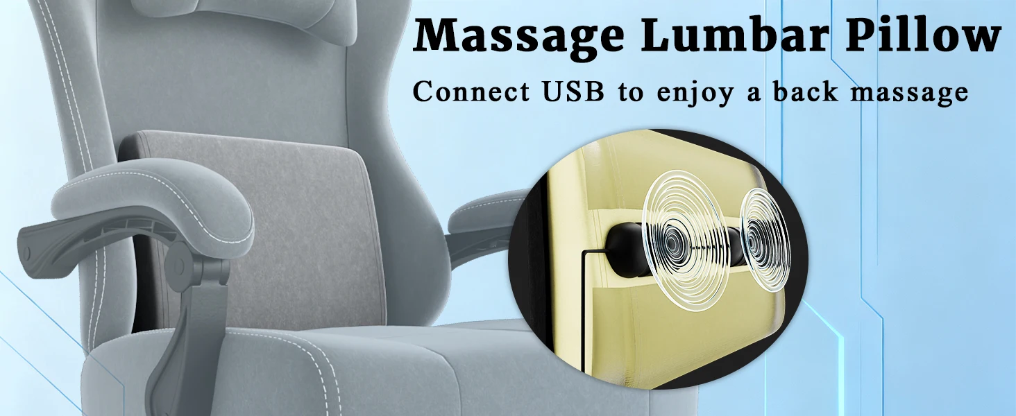 Massage Gaming Chair: Activate the massage lumbar pillow via the USB switch to relieve fatigue from prolonged sitting. The gaming computer chair is equipped with a retractable footrest, allowing you to enjoy extra rest time. The convenient back pocket design of the pc gaming chair enables neat storage of cables and small items for easy access at any time