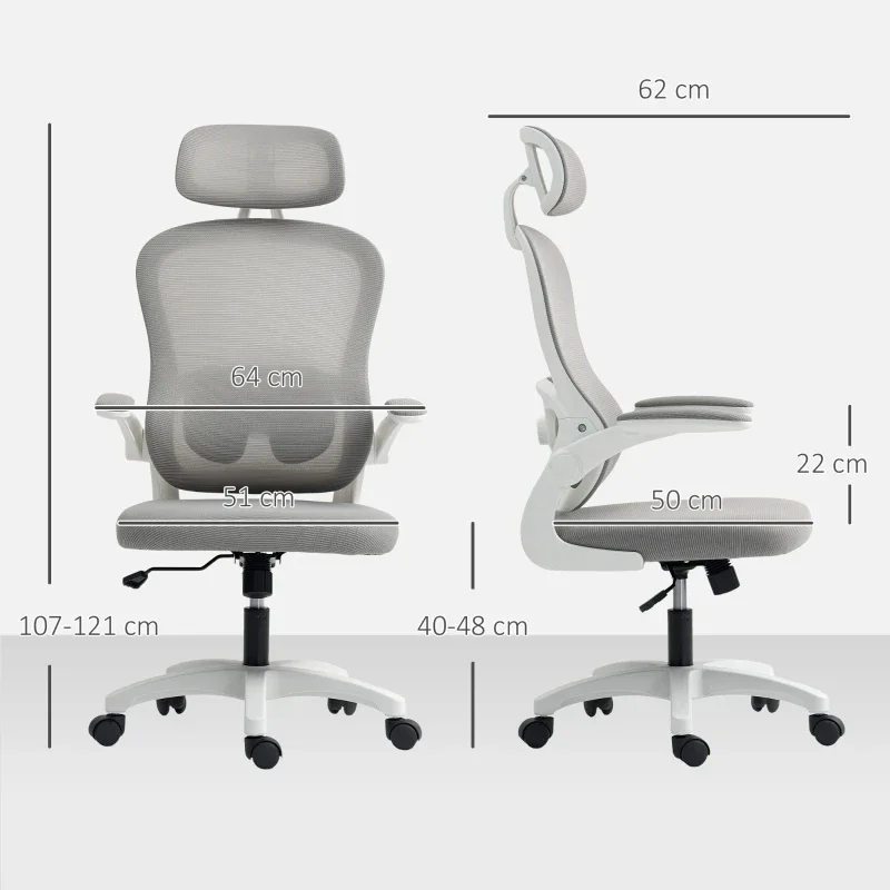 4. Space-Saving Armrests: Ideal for small spaces, the chair's fold-up armrests allow for easy storage under your desk. Perfect for shared workspaces or minimalist home offices