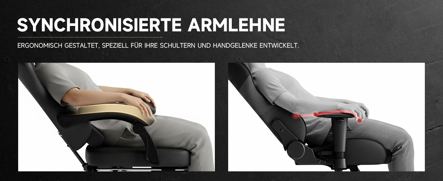3. Upgrade The Linkage Armrest: The game chair uses a linkage armrest design. The armrest is linked to the tilt Angle of the back of the chair. As the back reclines, the armrest is adjusted in sync to ensure full support for the arm at any Angle. This design enhances comfort and greatly improves convenience when using, making the posture more natural and relaxed when playing or working