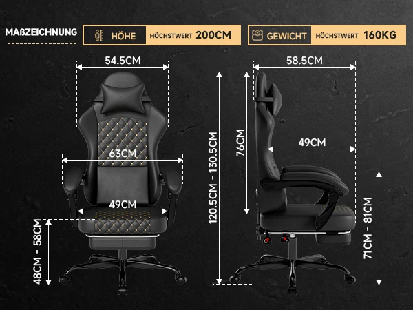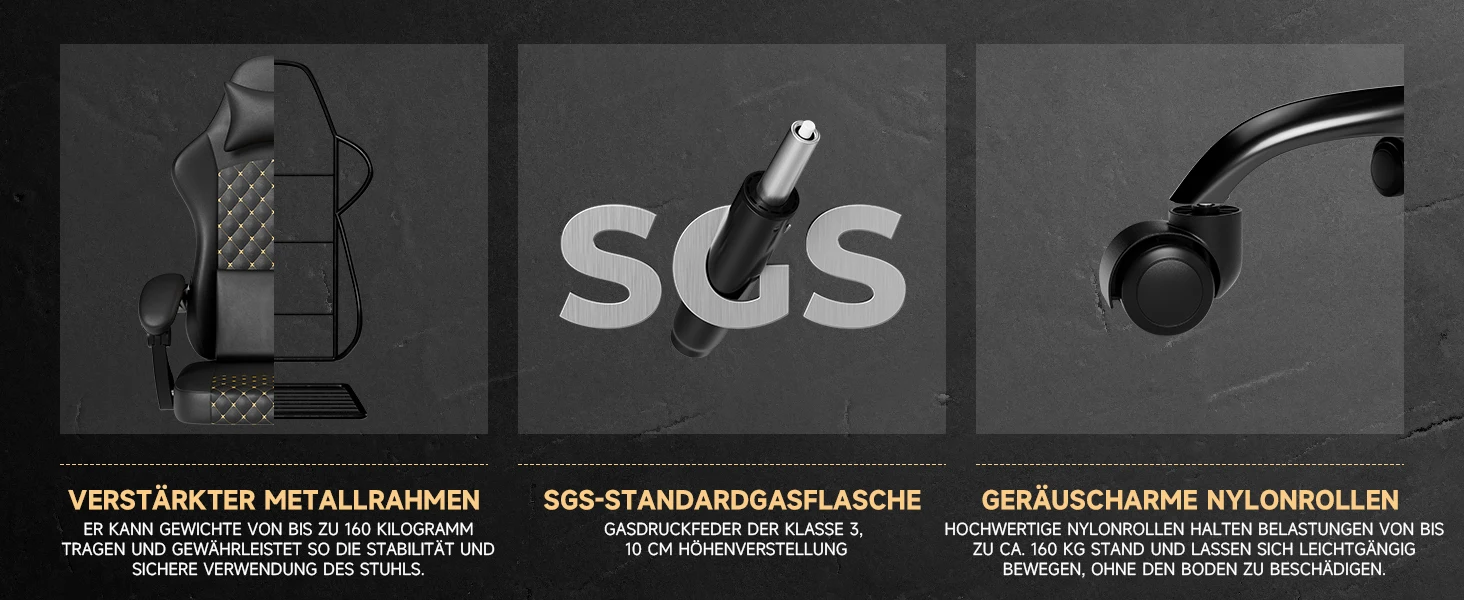 4. Excellent Stability: The chair is equipped with a high-strength steel frame and a sturdy iron base to further enhance its overall durability and load-carrying capacity. The iron base can provide solid support, whether it is an intense game operation or long office hours. The chair has a maximum load-bearing capacity of up to 300 pounds, ensuring that users of all sizes can use it safely and comfortably, enjoying lasting stability and peace of mind