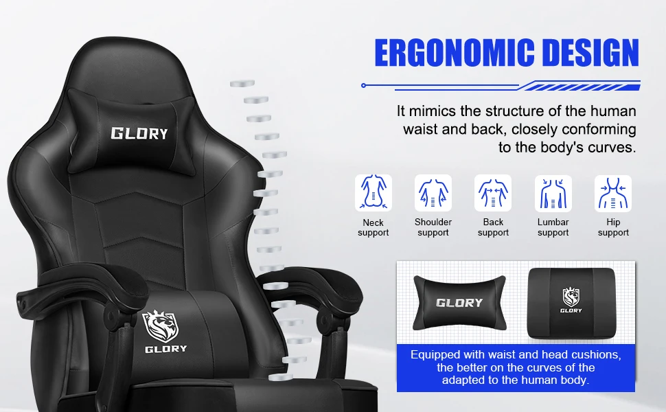 Designed to mirror the natural curves of your spine, this chair features an ergonomic backrest with dedicated neck, shoulder, back, lumbar, and hip support. The included waist and head pillows ensure extra comfort and a more tailored fit for your posture. Whether gaming or working long hours, this chair supports a healthier sitting position to reduce fatigue and strain.