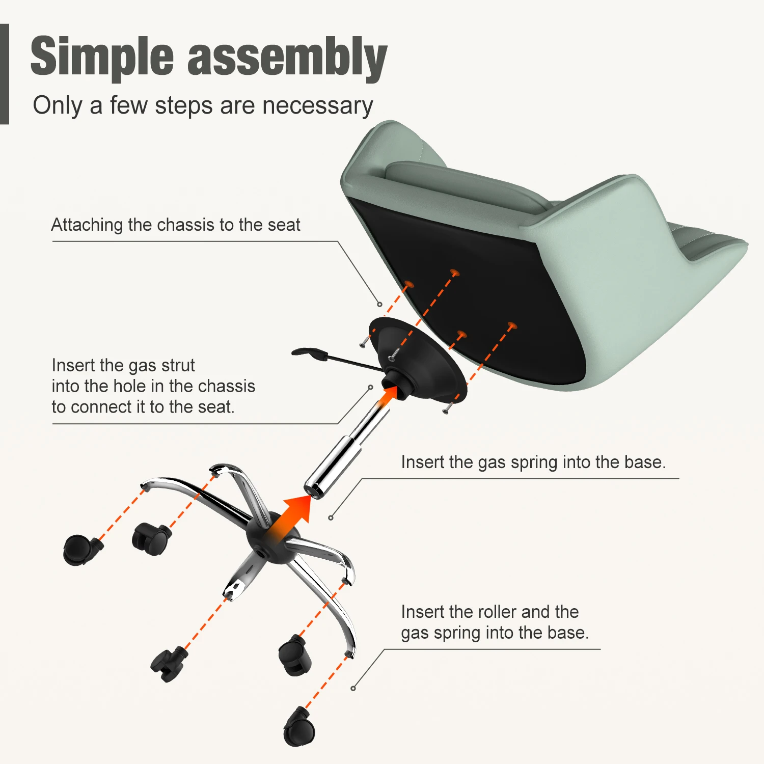 Equipped with 360° silent ball bearings and a smooth gas lift, offering adjustable height (10cm range) for effortless movement.
