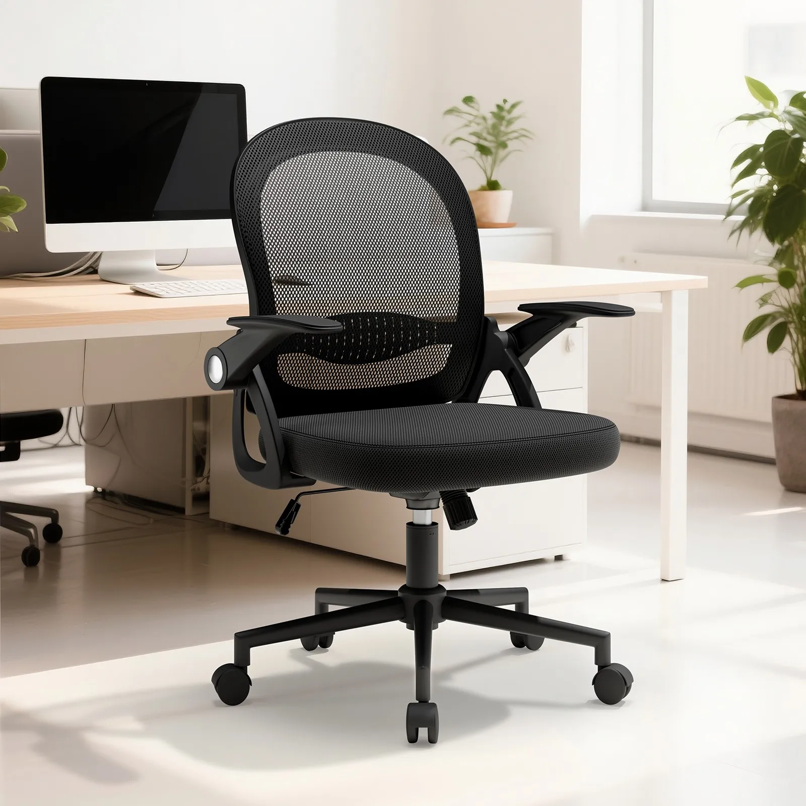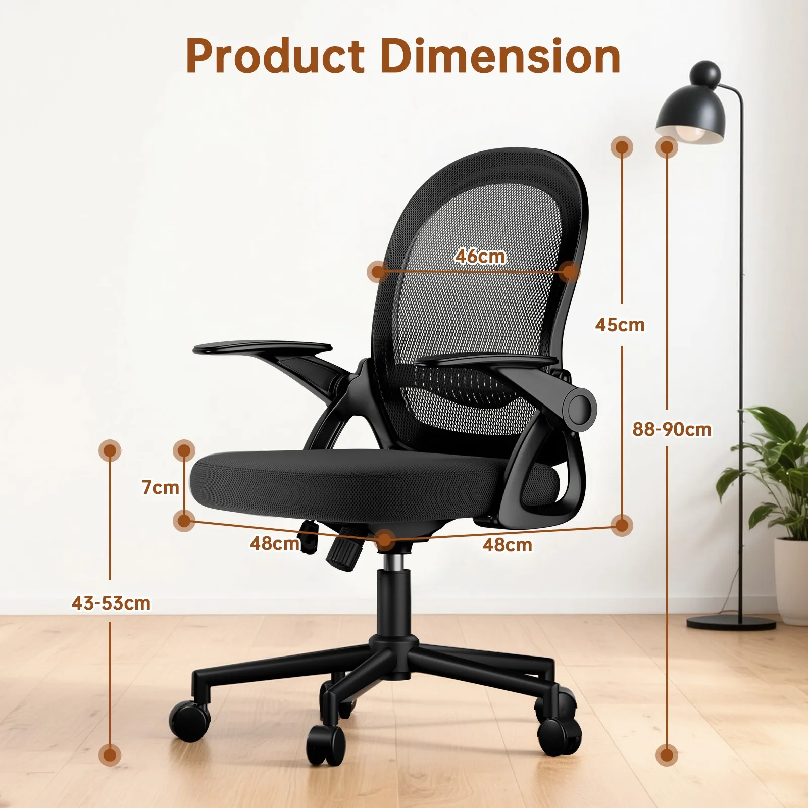 Office Chair Ergonomic Desk Chair Gaming Chairs Mid-Back Mesh Chair Flip-up Armrest's Lumbar Support for Home Office