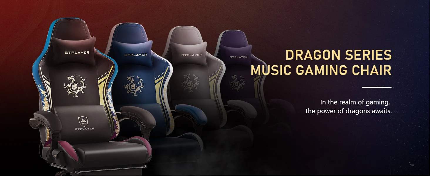 GTPLAYER Gaming chair Gamer chair with Bluetooth Speakers and Footrest Dragon Series Office chair Ergonomic Gaming chair Swivel Armchair Computer chair