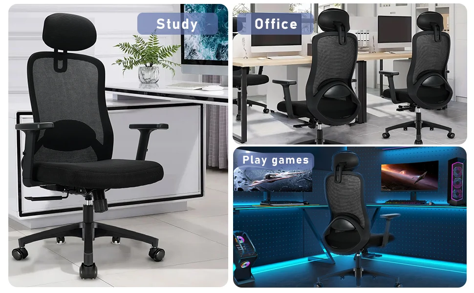The S-shaped backrest of the office chair is ergonomically designed to adapt to the curve of your back, reducing pressure on the lumbar vertebrae and promoting spinal health. The office chair's sponge lumbar support is softer and provides support while protecting your lumbar spine. The backrest of the desk chair can be tilted and locked 90°-130° rocking function. The lumbar support of the desk chair can be adjusted up and down.