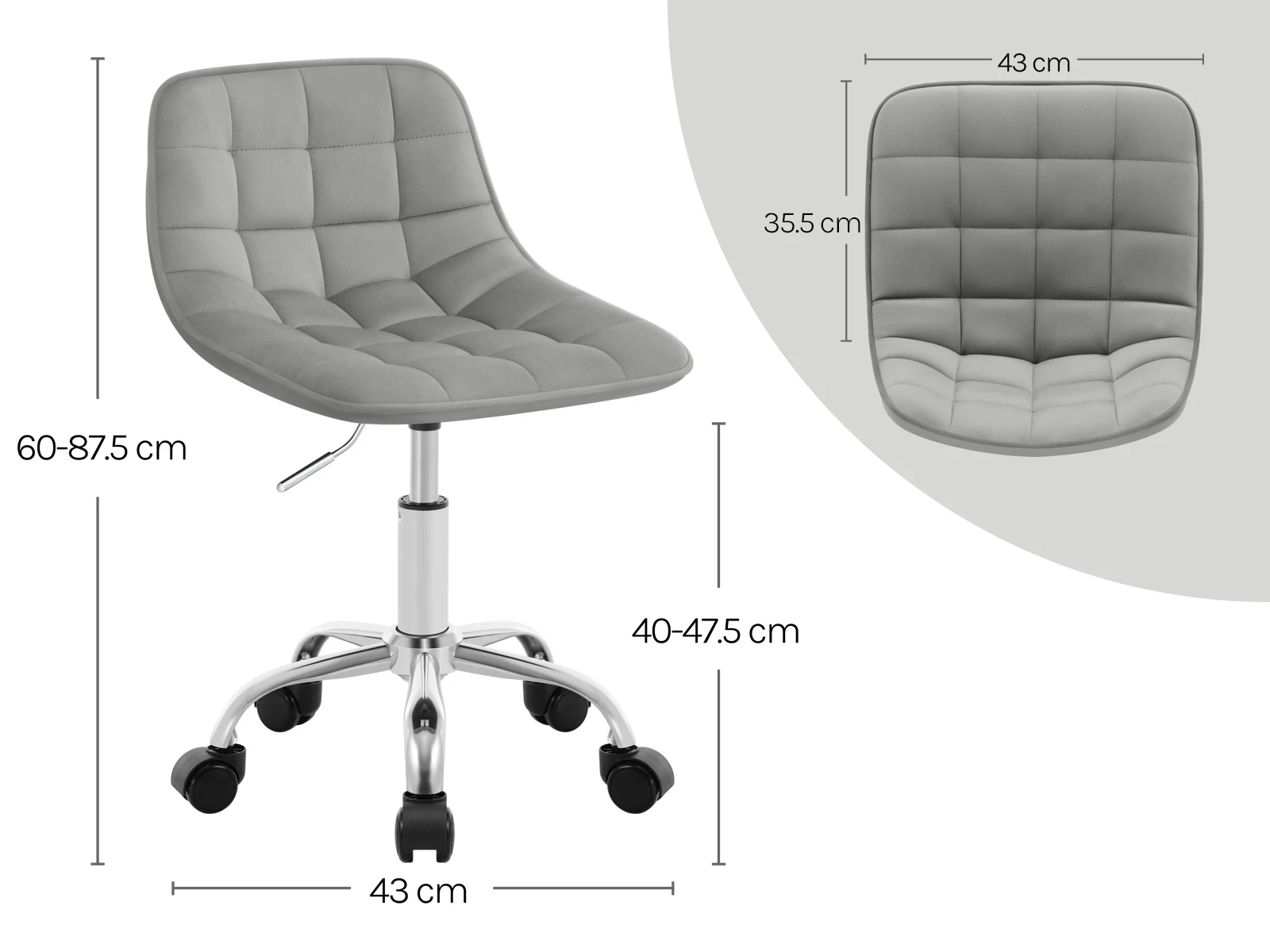 HIGH-QUALITY MATERIALS: Durable and tear-resistant velvet, sturdy five-star metal feet, high-quality gas spring, wear-resistant PU wheels ensure that this desk chair is durable and stable while running quietly and protecting the floor