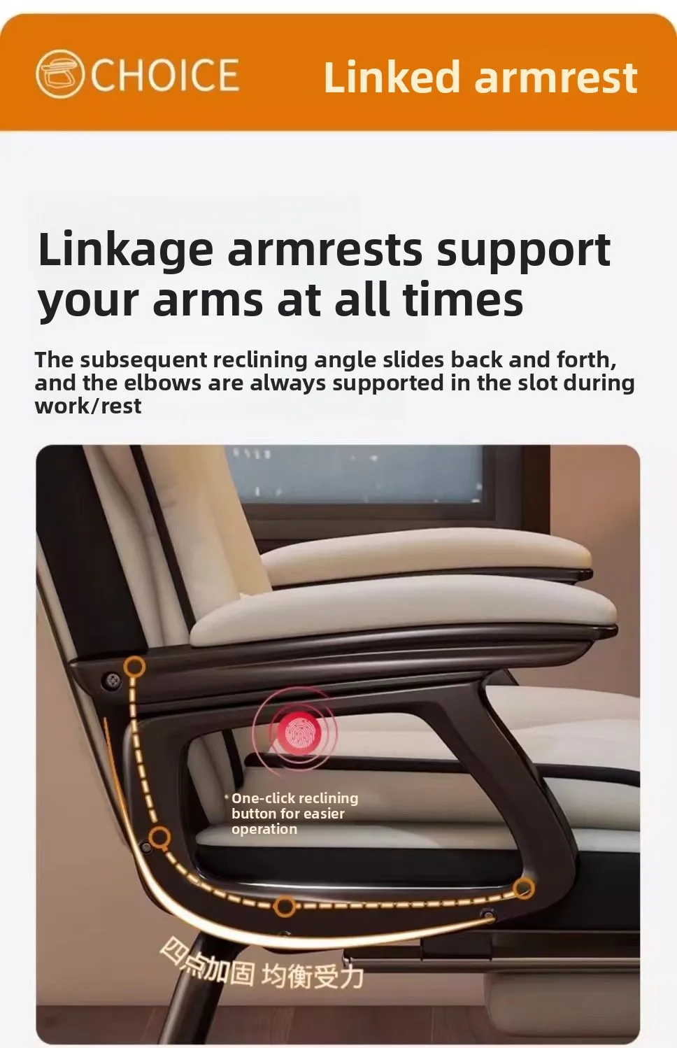 Sync-Tilt Motion & Linked Armrests: The chair features a synchronized tilt mechanism. The linked armrests move in harmony with the backrest as you recline, ensuring continuous and comfortable arm support in every position.