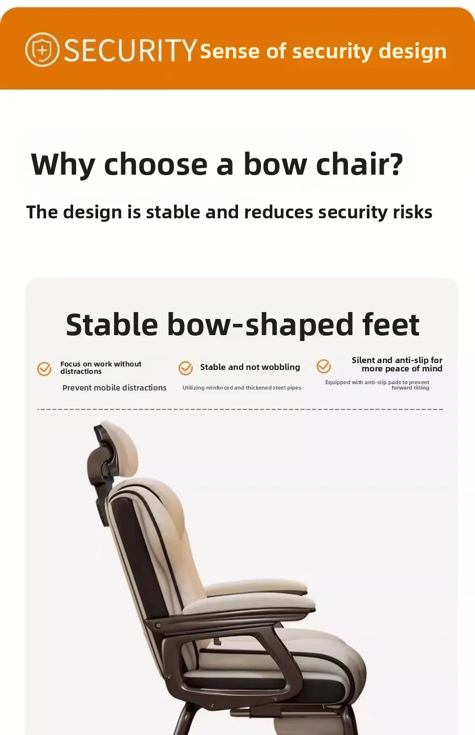 Sturdy Base: Supported by a durable and space-saving Bow-Shaped Foot , ensuring stability and a modern aesthetic without the bulk of a traditional five-star base.