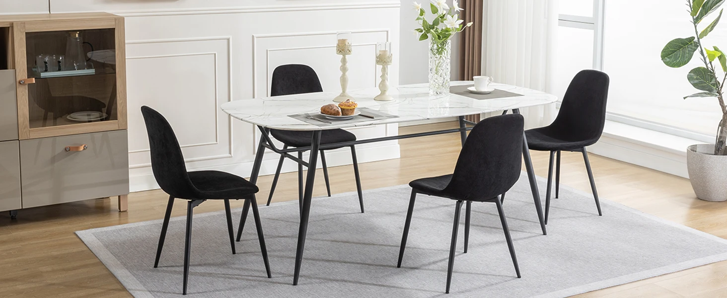 Chaise salle à manger noir en velours côtelé 4 ensembles