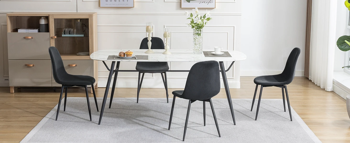 Comfortable Sitting: Following the ergonomic principle, the dining chair has a comfortable seat and backrest, both covered with durable and breathable corduroy and padded with high-density soft foam