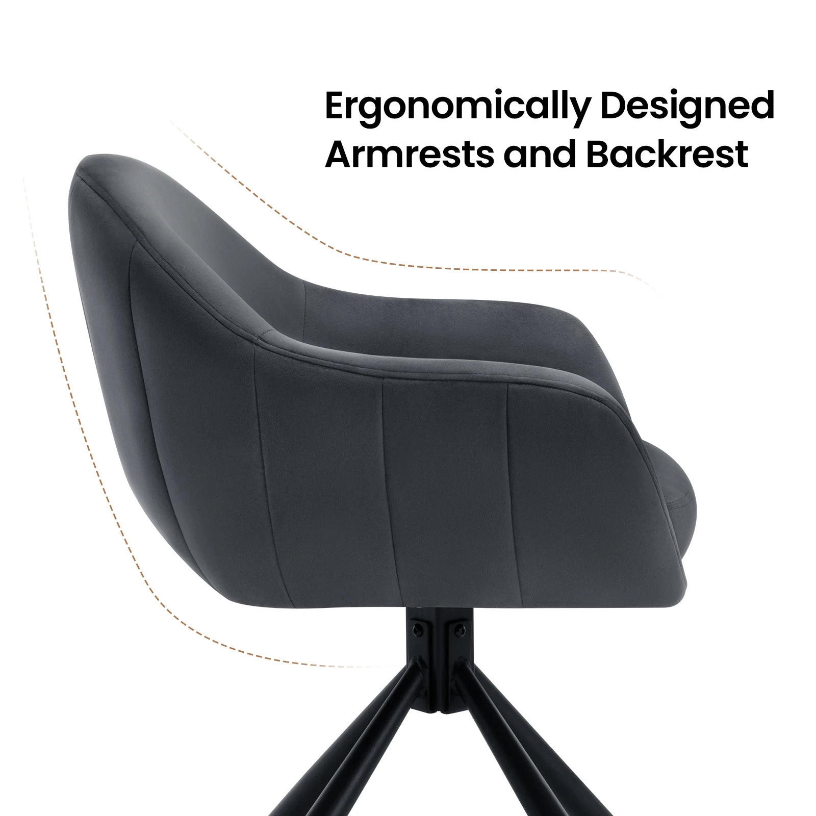 SOFT & COMFORTABLE: With the skin-friendly velvet surface, the wide and ergonomic seat, the padded backrest and armrests, the dining chair offers you a good seating experience.