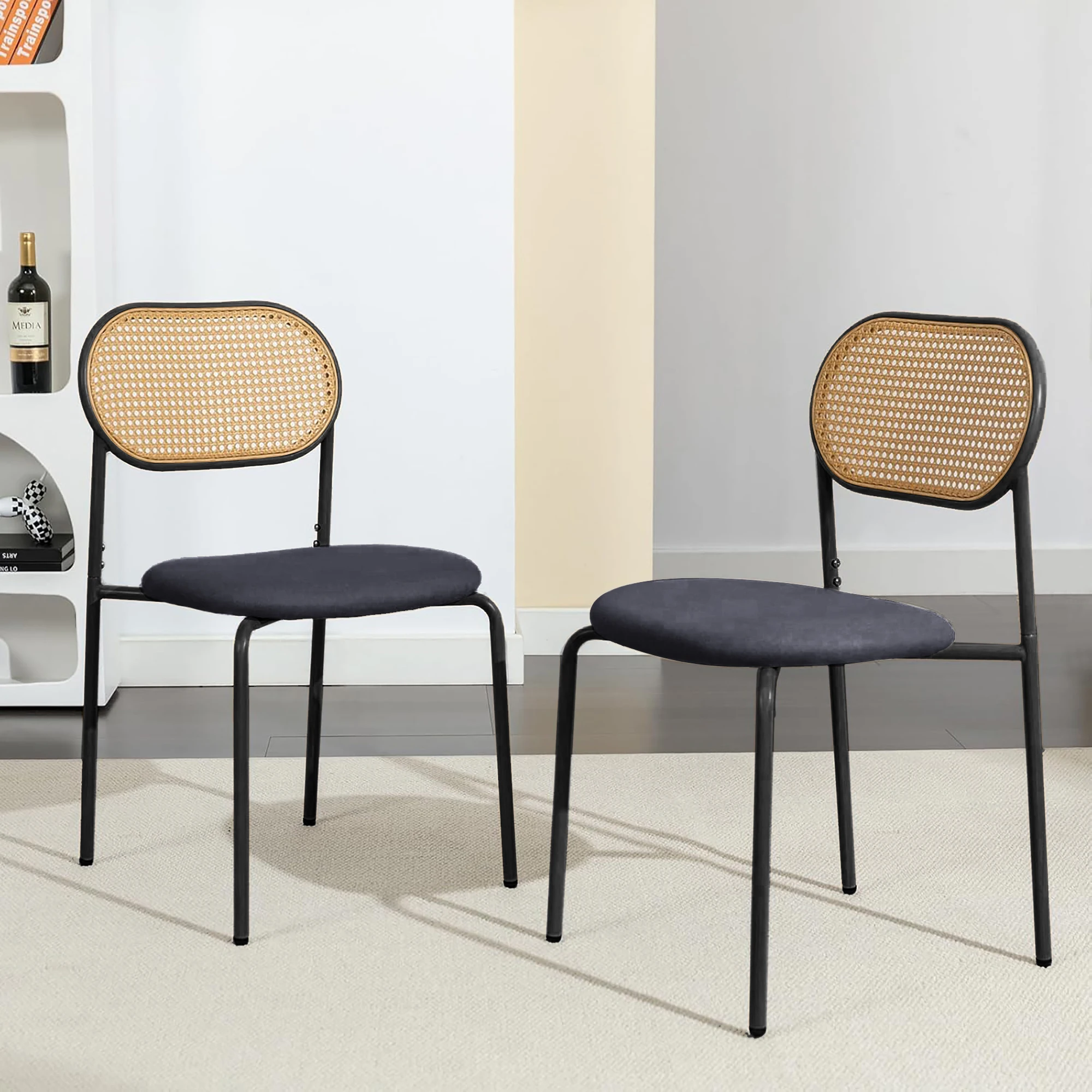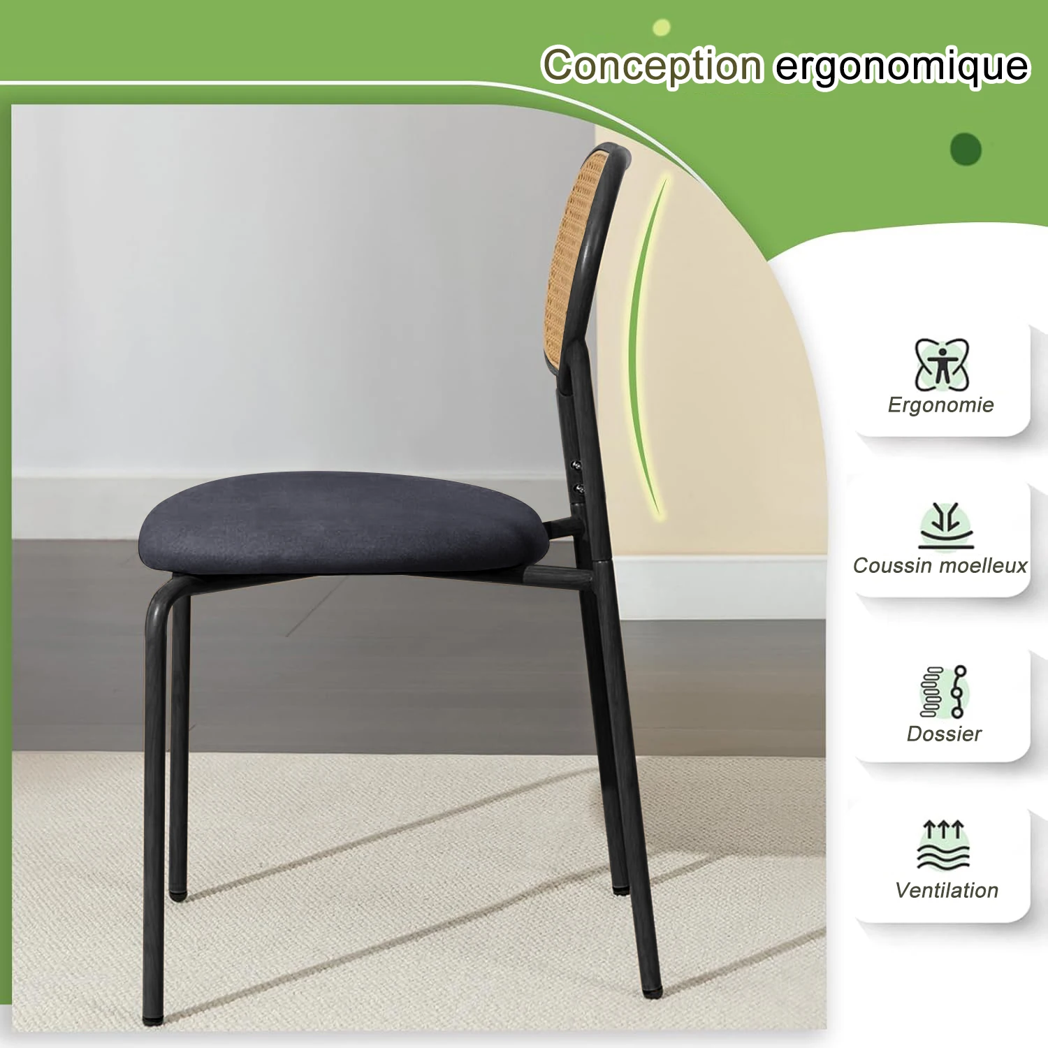 Chaise salle à manger rotin simple de 2 pièces - Noir Chaise salle à manger