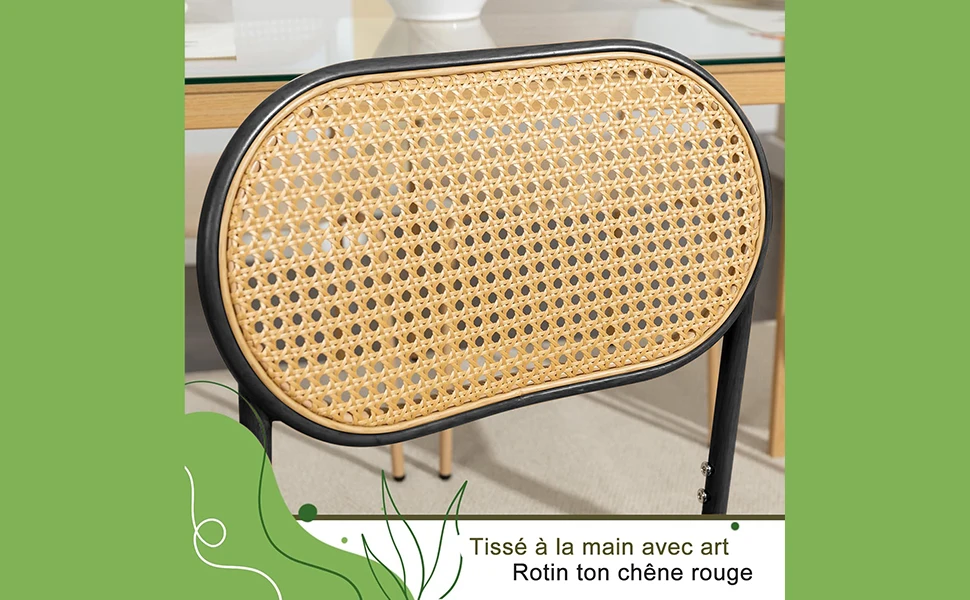 Rtin folder:The braid synthetic rutin backrest is built into the robust metal structure, creating a warm and welcoming atmosphere in your dining room. The soft seat cushions provide comfortable breathability and good back support.