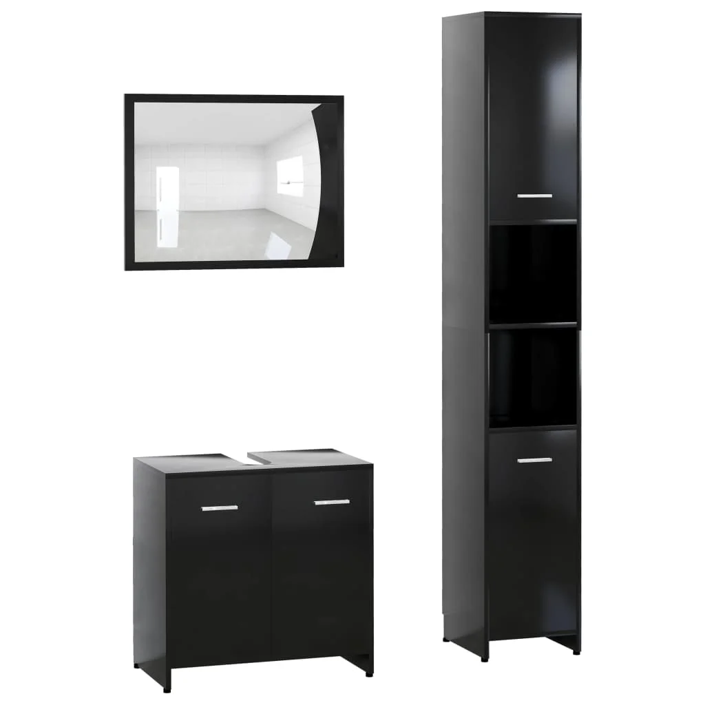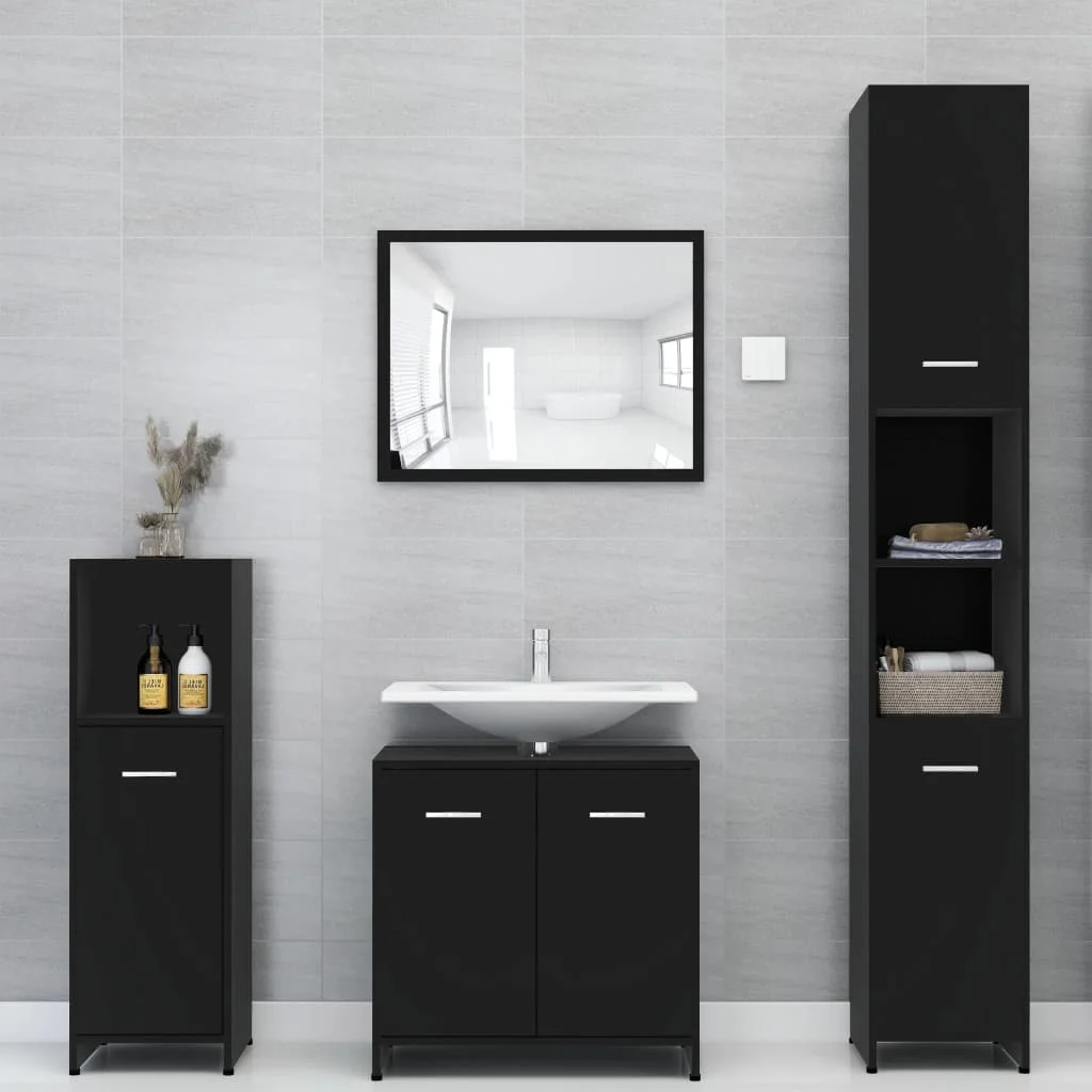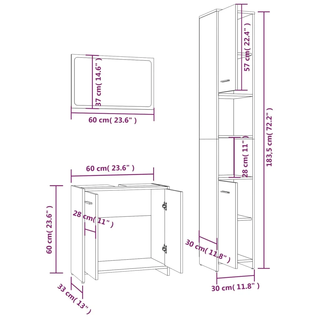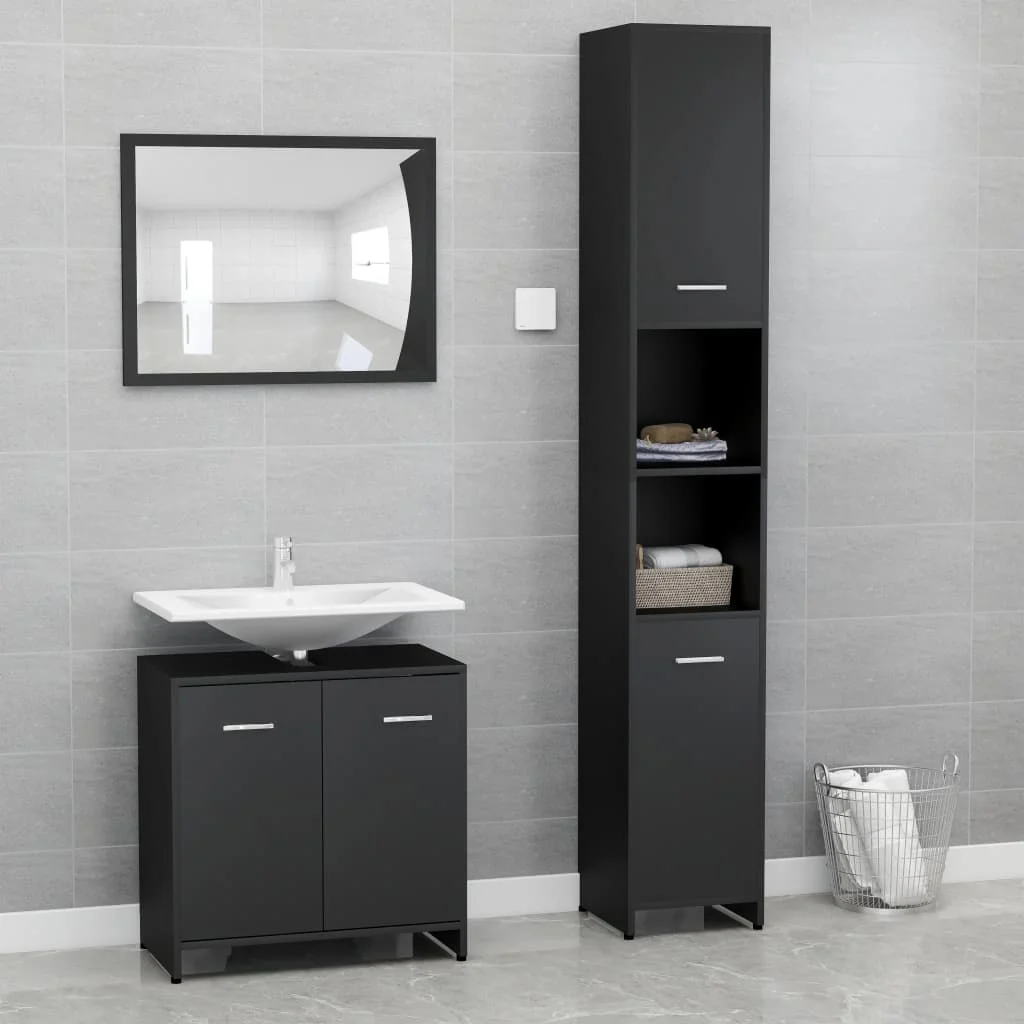 This stylish 3-piece bathroom furniture set with spacious storage space is a great addition to your bathroom, giving it a neat and impressive look! Practical material: Engineered wood is of exceptional quality with a smooth surface and also features strength, stability, and moisture resistance. Large storage space: This bathroom mirror cabinet offers ample storage space to keep your laundry items, toiletries, and other items well organized and within reach. You can create and optimally utilize additional storage space in your bathroom. Utility mirror: The bathroom cabinet with mirror is perfect for your daily beauty routine. The mirror allows you to take care of your facial skin and apply makeup too! Elegant design: The clean lines and elegant design make this bathroom sink cabinet fit perfectly into your bathroom. Caution: To prevent tipping, this product must be used with the provided wall mounting device. Note: Screws and anchors for the inside of the wall are not included. Find and use screws and anchors suitable for your walls. If you are unsure, seek professional advice. Read and follow each step of the instructions carefully. Each product comes with an assembly manual in the box for easy installation.