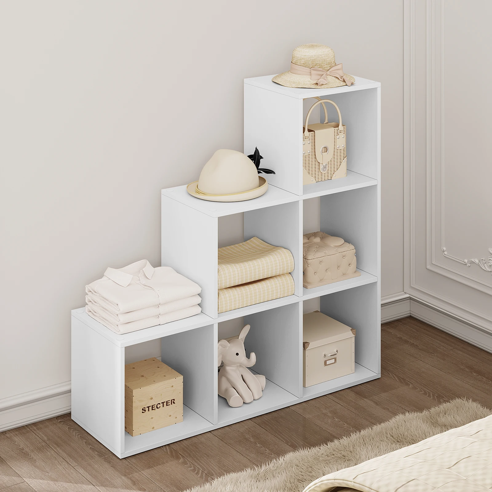 Easy to assemble: with the illustrated instructions and numbered accessories, you can easily assemble this folder shelf with 6 cube compartments