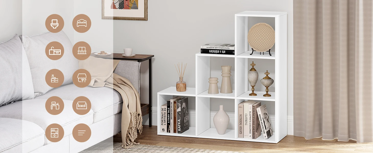 Book Display Storage White Bookshelf Bookcase with 6 Compartments Cabinet for Toys Organizer Living Room Bedroom