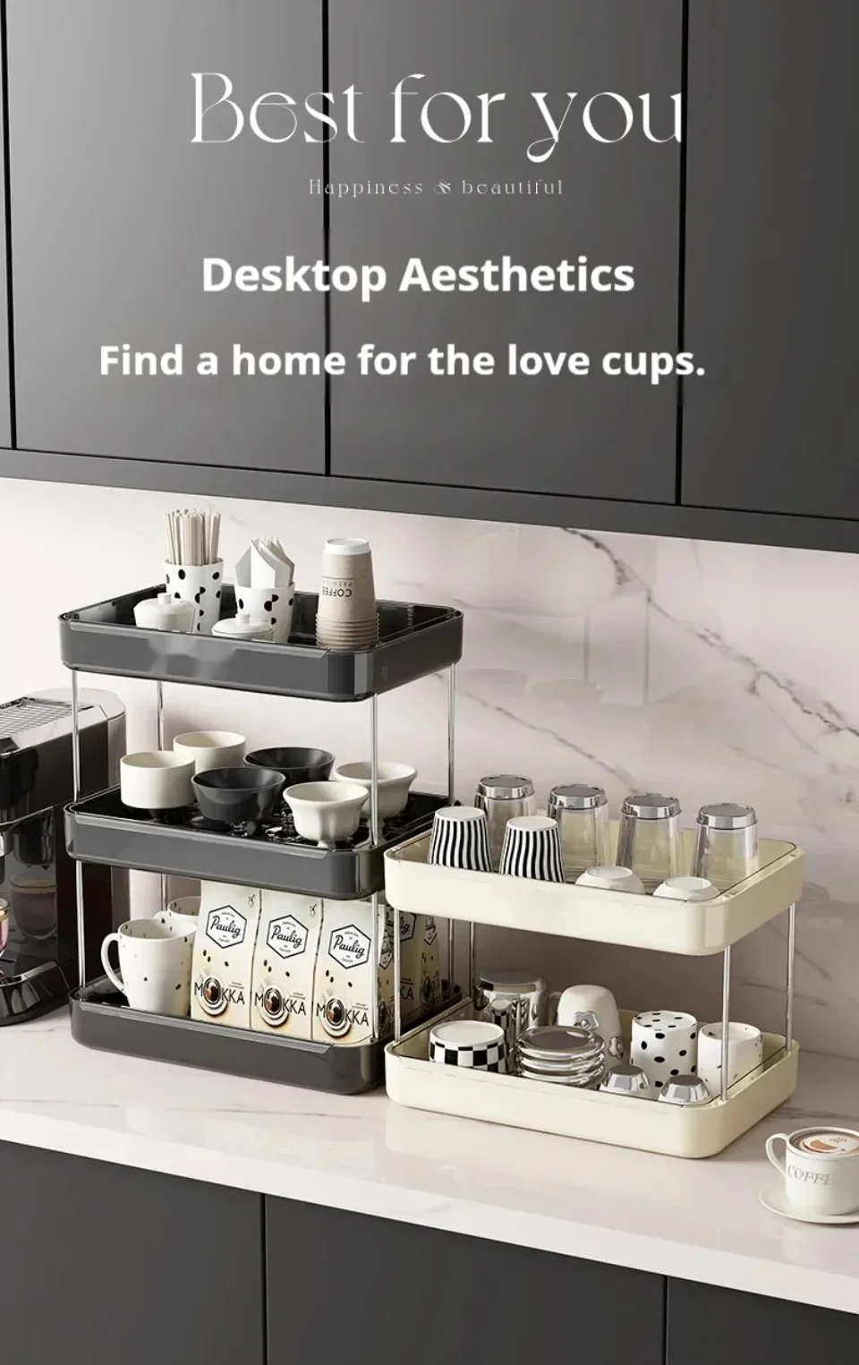 Cup Storage Rack Organizer Desktop Three-Layer Tray Rack Office Coffee Shelf Practical Multi Functional Household Kitchen Shelf