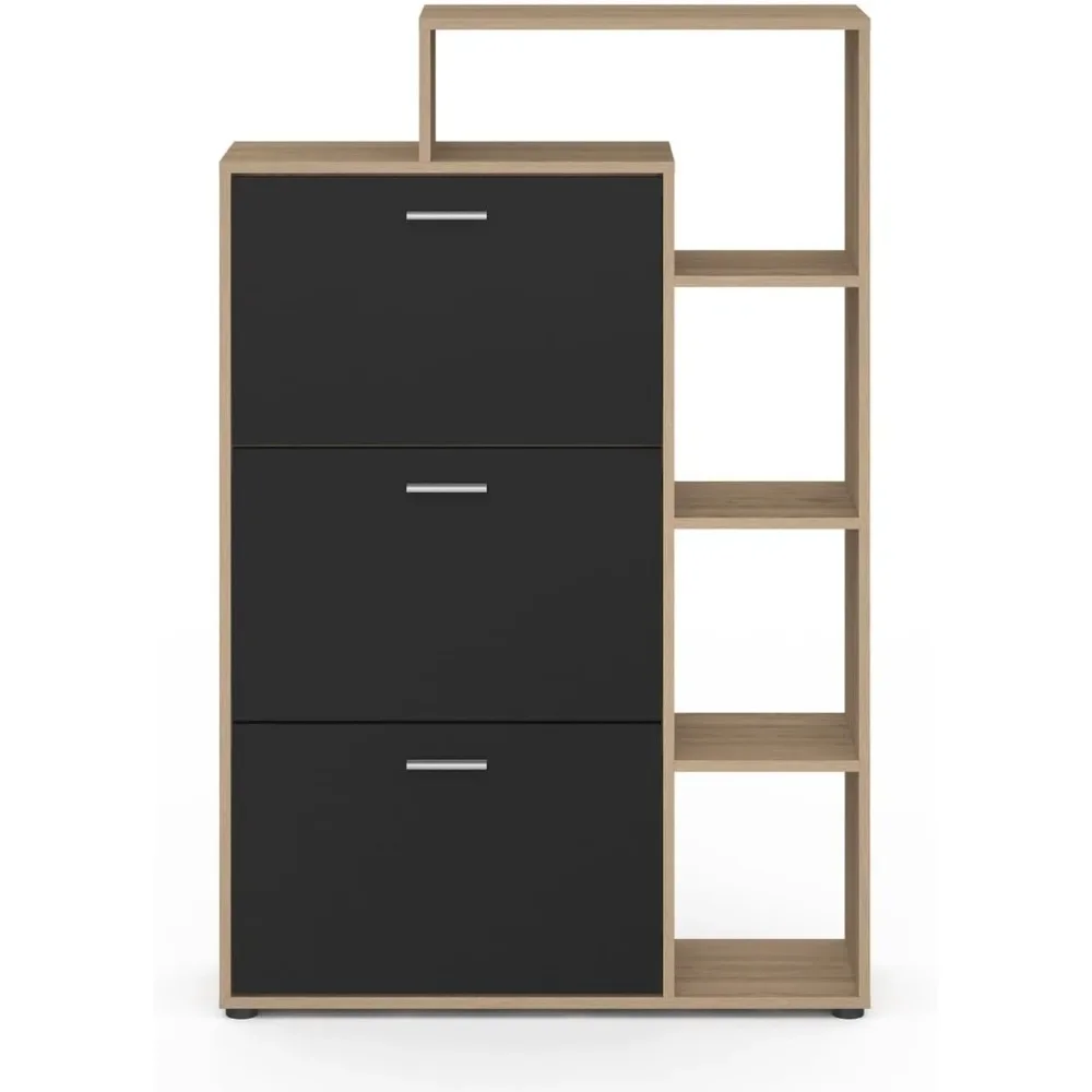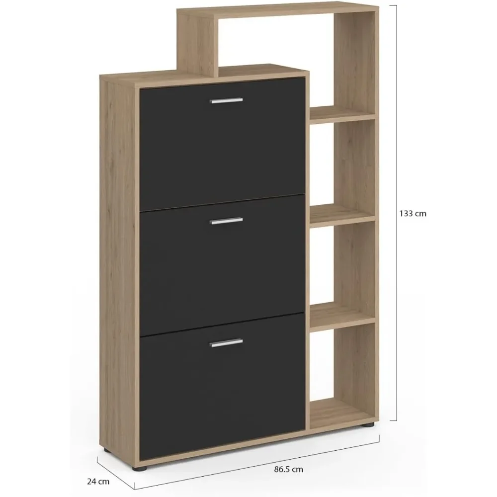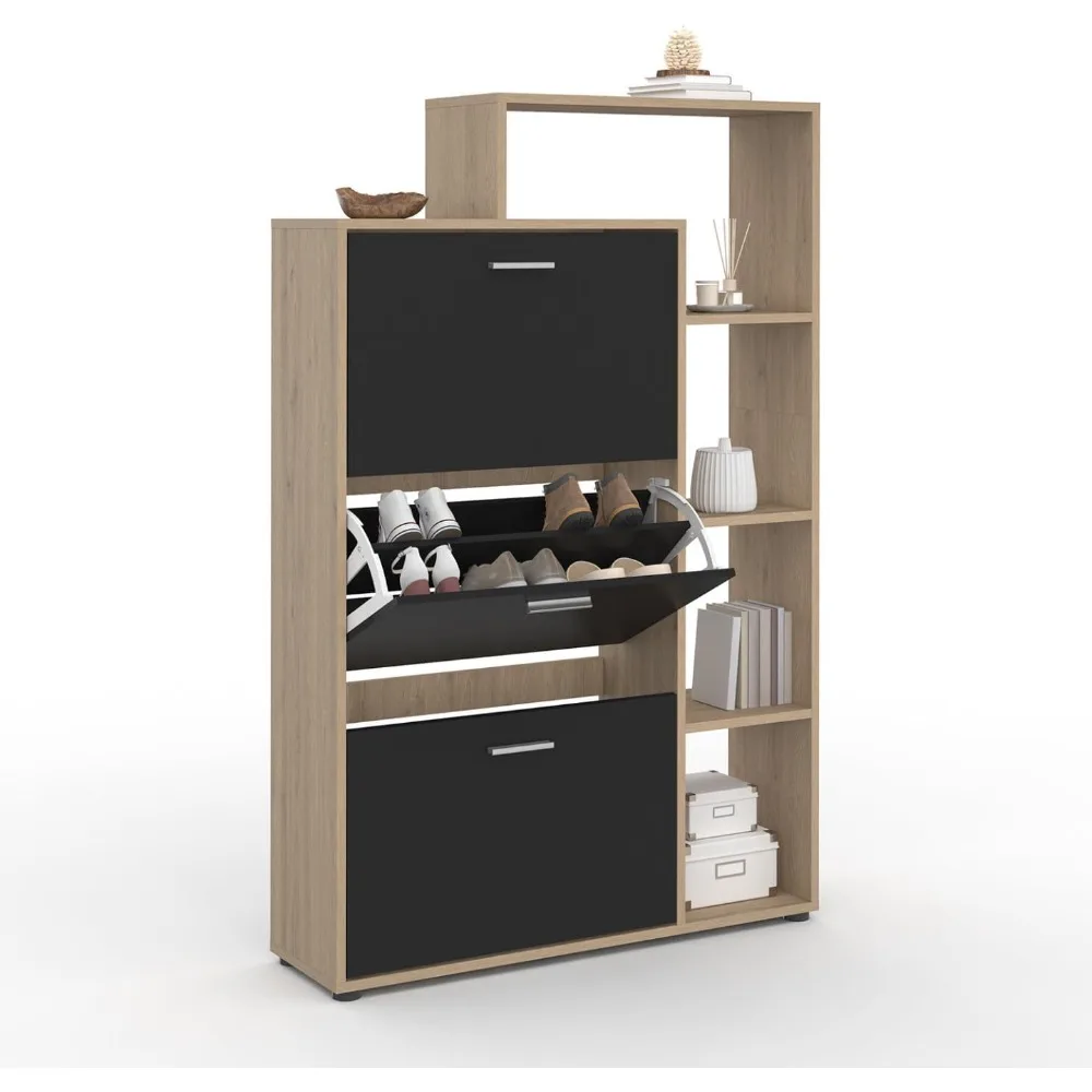 - Our 3-door black beech shoe rack with shelf is ideal for saving space