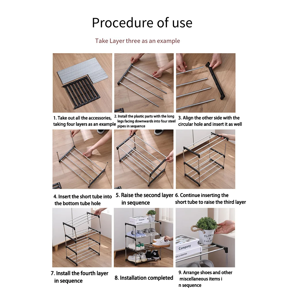 High Quality: The small metal shoe rack is made of sturdy metal crossbars and a sturdy plastic frame to ensure durability and stability and prevent deformation over time. This wardrobe shoe rack is lightweight and durable