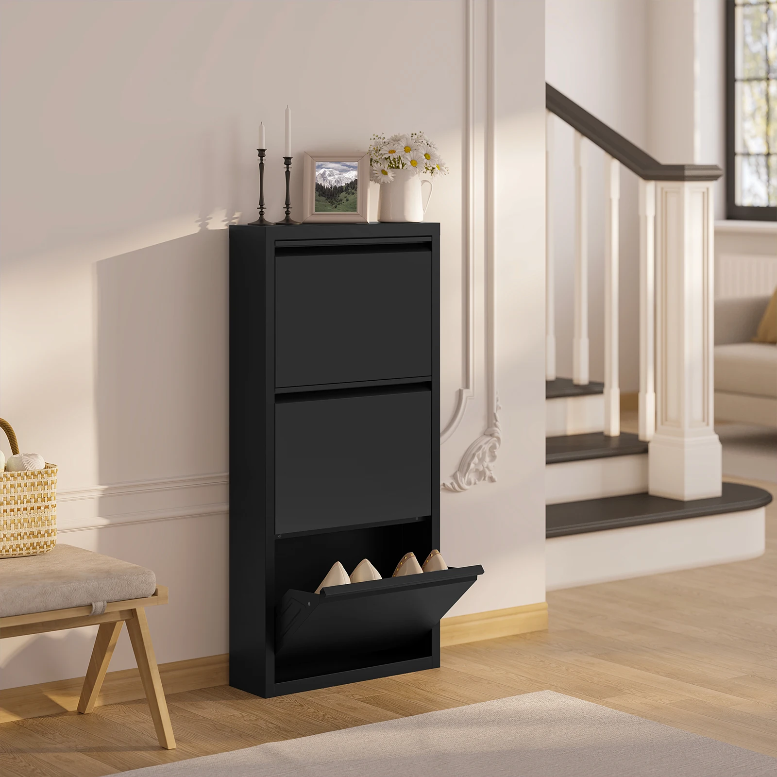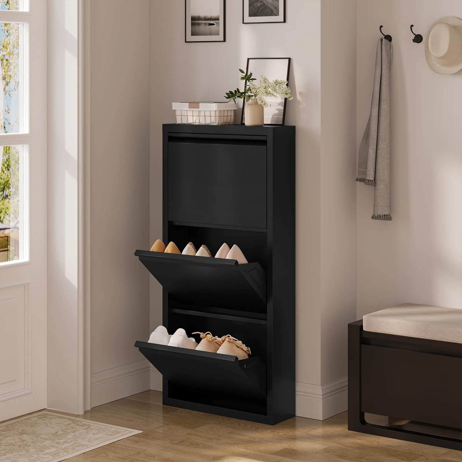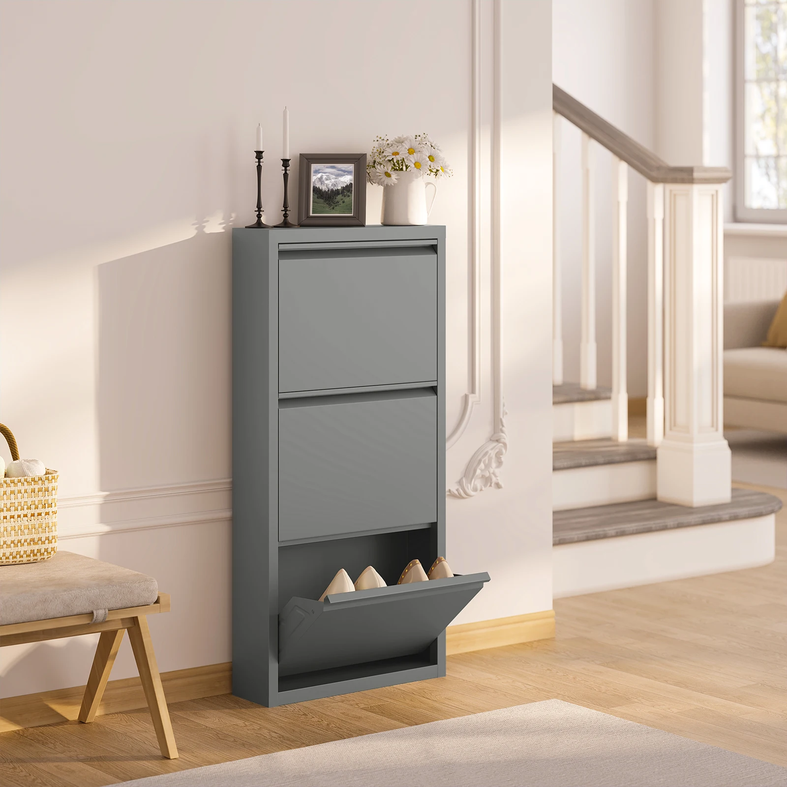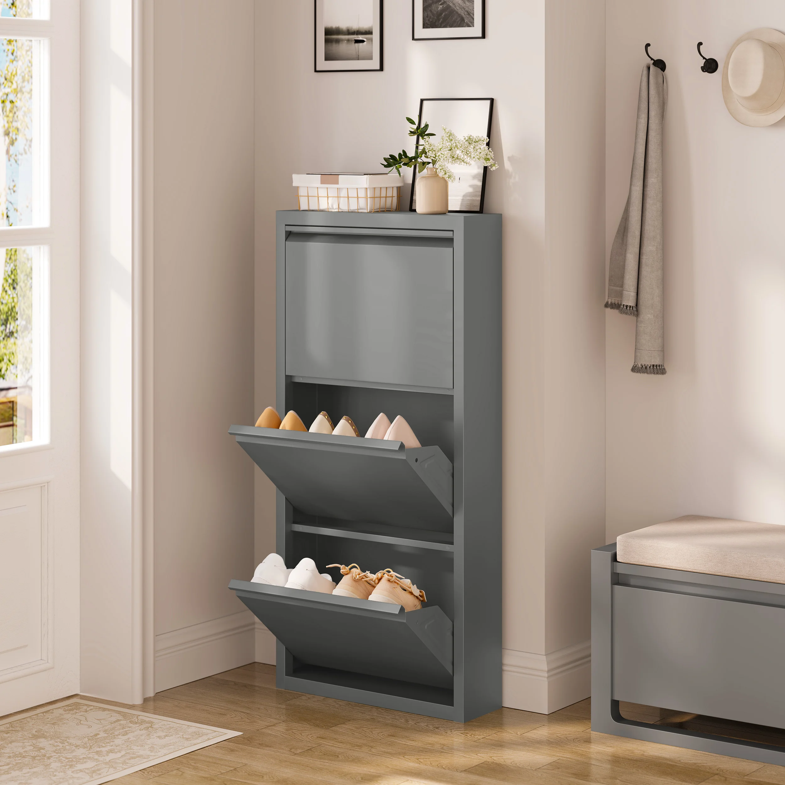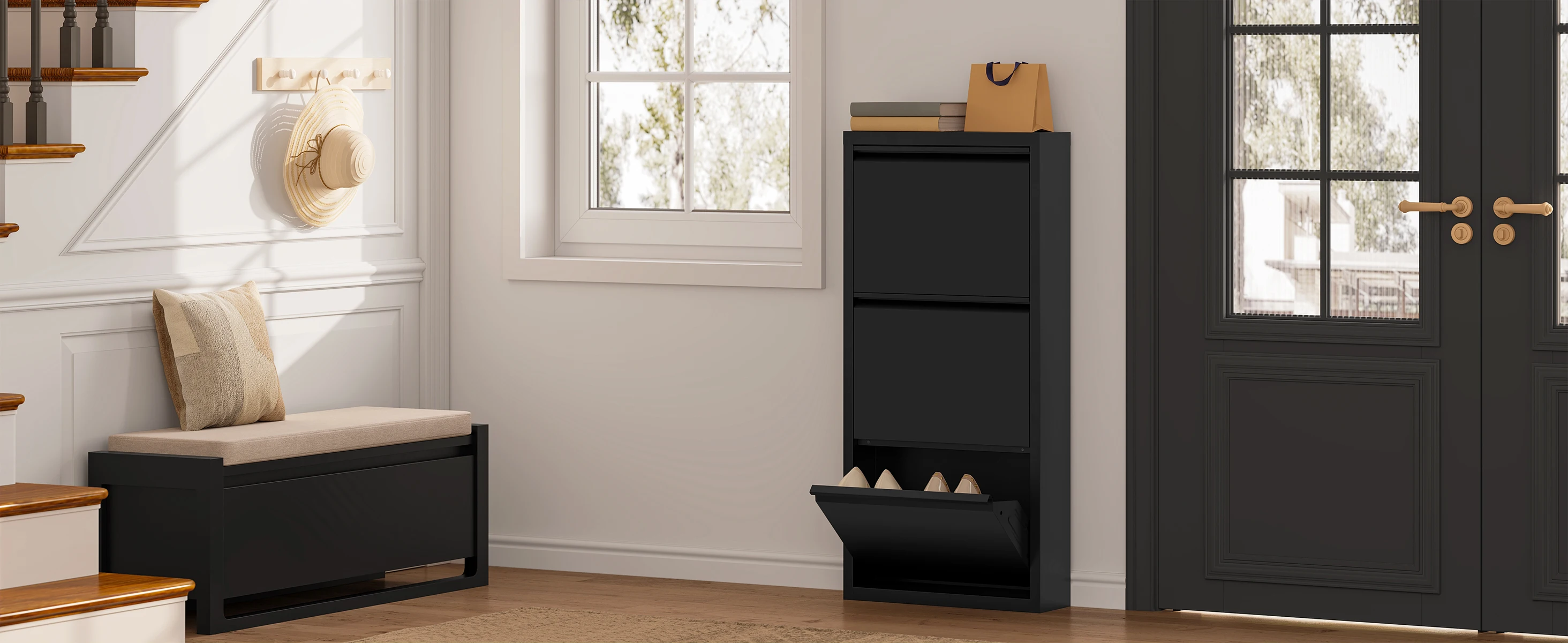SIMPLE APPEARANCE: The narrow shoe cabinet has a simple and modern design. Thanks to the fine workmanship, compact size and fashionable style, it fits perfectly with a variety of interior styles and offers you convenience while emphasising its advantages