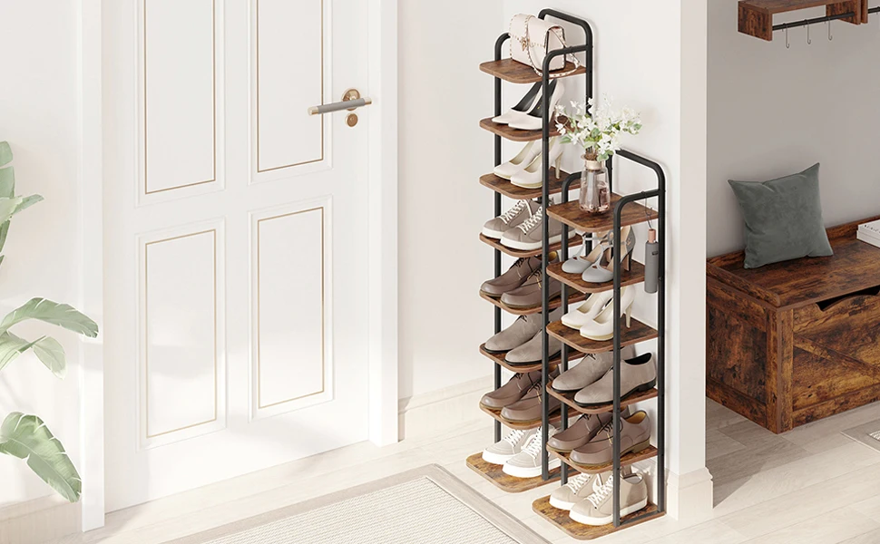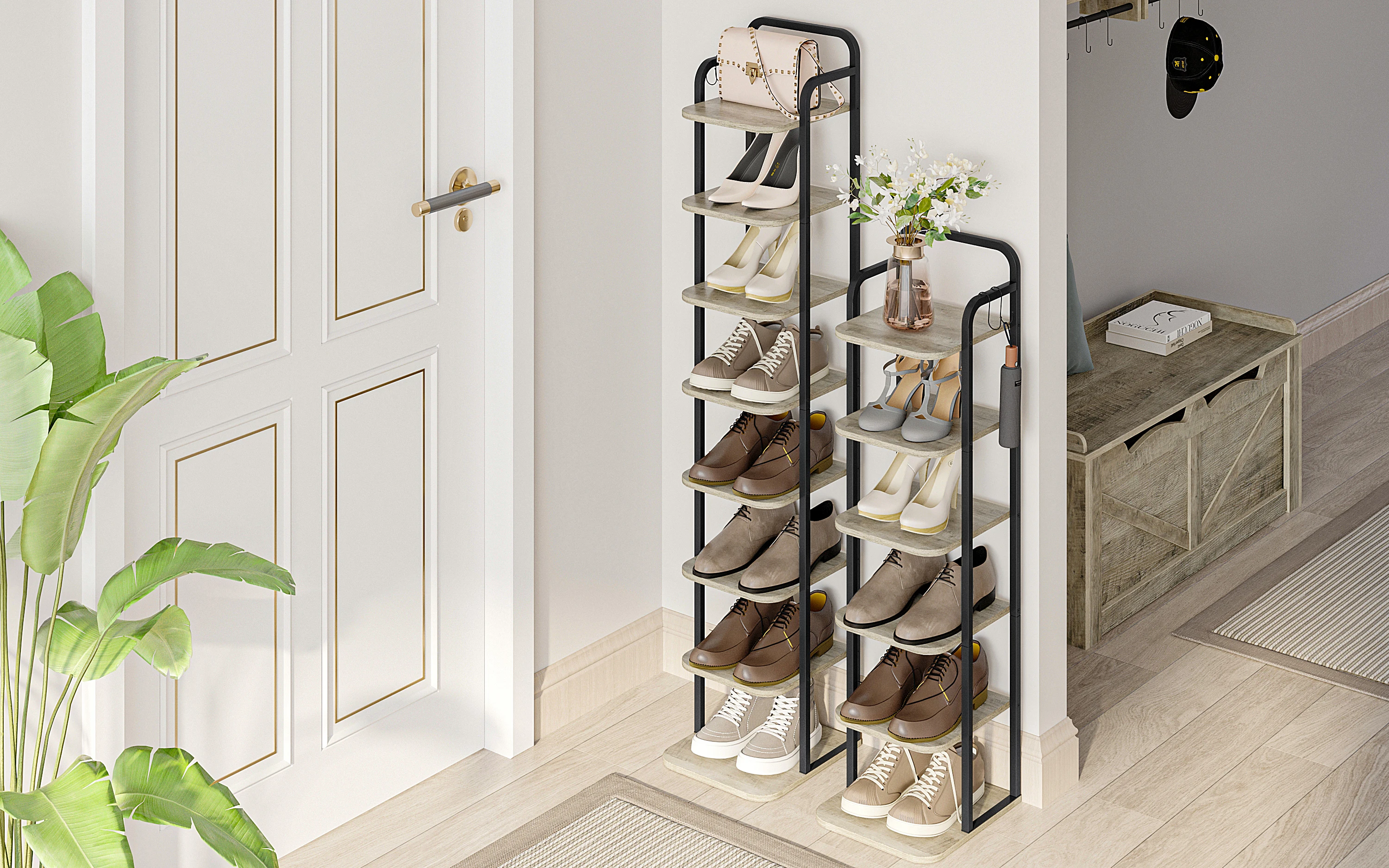 Not just a shoe rack: Only a shoe rack? No, this freestanding 6 tier shelf can also be used as a plant stand, for photos, etc. It has multiple uses. The hooks on both sides of the shoe rack can hang umbrellas, purses or other items