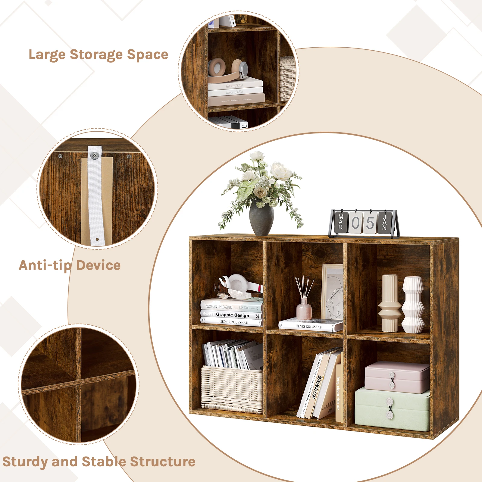 To avoid the dressing table tipping over, it could anchored firmly to the wall with the tilt guard.