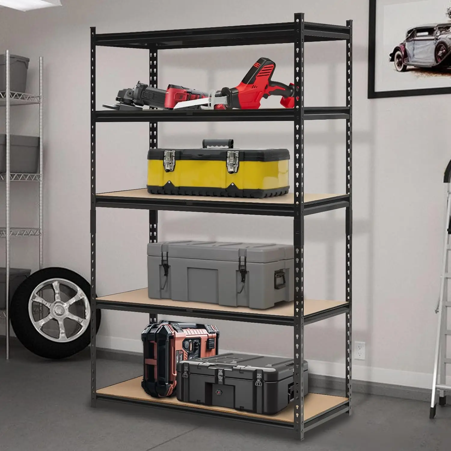 Adjustable Shelves: Customize your storage to fit your unique needs with adjustable shelves that can be repositioned in 1.5-inch increments. Perfect for accommodating a variety of items, from tools and equipment to boxes and bins.