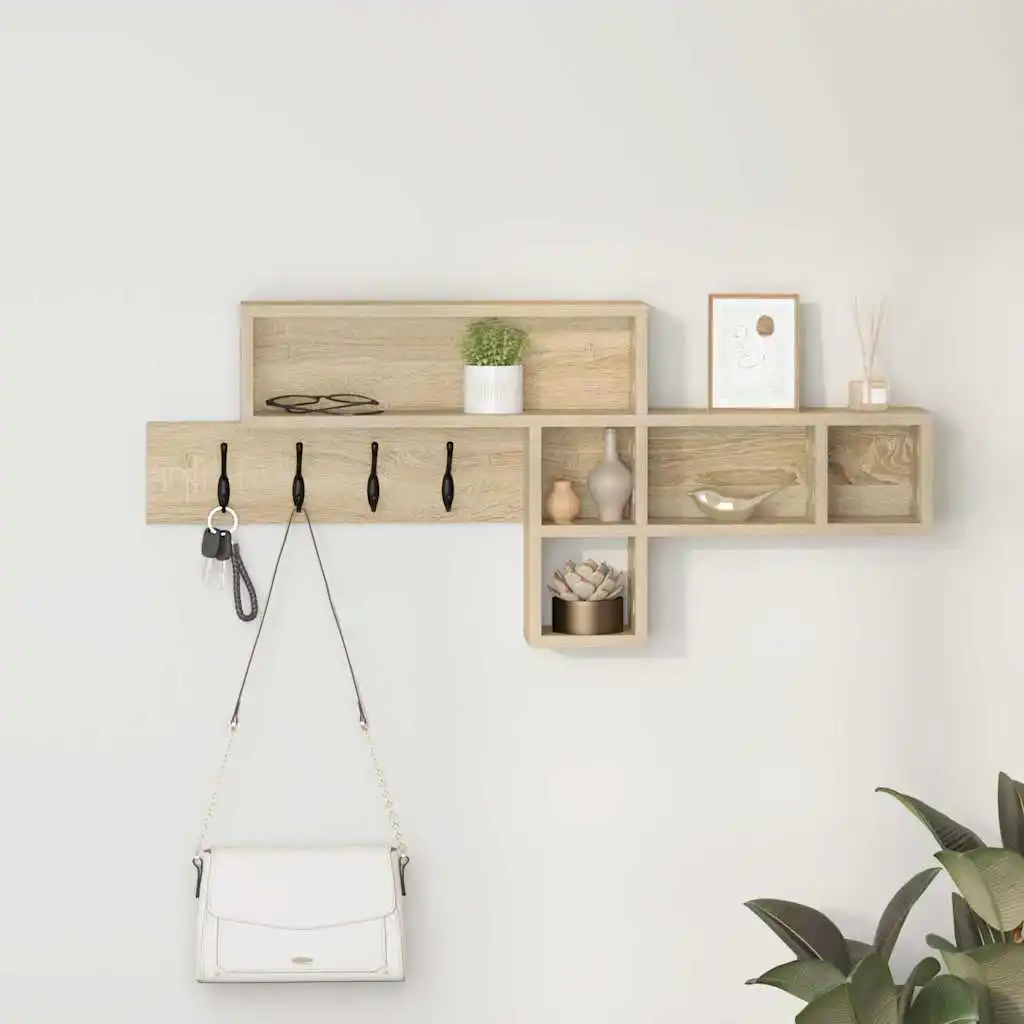This wall-mounted coat rack combines style and utility, perfect for modern homes that want to maximize space. With its cool rectangular shape and clean lines, it instantly beautifies entryways or hallways while providing convenient storage. Its flexible design is great for hanging coats, storing hats, or displaying decorative items, appealing to those who value both look and function. Abrasion-Resistant Surface: Constructed from quality engineered wood, the coat rack's surface handles daily wear and tear without a worry. Its solid material is made to last while maintaining class in busy homes. Combined Storage Features: This coat rack has plenty of hooks to keep your coats, hats, and bags neatly organized, and a shelf for things like shoes, baskets, or decor. It's a practical and stylish addition that makes your entryway more functional. Stable Hooks: With strong hooks, this coat rack can hold quite a bit of weight and keeps your belongings safe. The clever arrangement reduces clutter, making everything easy to access while keeping things tidy. Space-Saving Design: Wall-mounted design frees up space by making good use of vertical space. It's ideal for small spaces like hallways, providing a clean look while still allowing for essential storage. Easy Care: To keep it looking its best, a quick wipe with a damp cloth is all it takes, no need for harsh products. Simple maintenance keeps its finish fresh, ensuring the coat rack remains an attractive and useful part of your home for years to come.