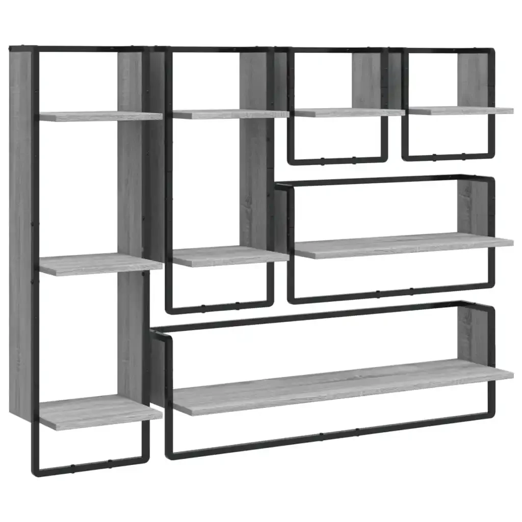 Maximize your interior space and add style to your wall with this wall shelf set! Sturdy material: Engineered wood is of exceptional quality with a smooth surface and also features strength, stability, and moisture resistance. Practical design: The floating shelf provides storage space to keep your decorative items well organized and within reach. In addition, the bar can be used as a stand. Wall-mounted design: The display shelf can be mounted on the wall to add extra storage space. This way, you can maximize your floor space and keep the area clean. Good to know: Screws and anchors for the inside of the wall are not included. Find and use screws and anchors suitable for your walls. If you are unsure, seek professional advice. Read and follow each step of the instructions carefully. Color: Sonoma Gray Material: Engineered wood, metal Dimensions (smaller): 30 x 25 x 65/30/100 cm (W x D x H) Dimensions (larger): 65/100 x 25 x 30 cm (W x D x H) Assembly required Delivery contains: 6 x wall shelves