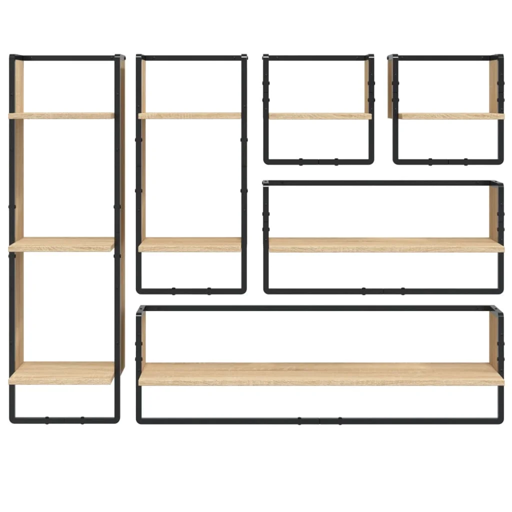 Maximize your interior space and add style to your wall with this wall shelf set! Sturdy material: Engineered wood is of exceptional quality with a smooth surface and also features strength, stability, and moisture resistance. Practical design: The floating shelf provides storage space to keep your decorative items well organized and within reach. In addition, the bar can be used as a stand. Wall-mounted design: The display shelf can be mounted on the wall to add extra storage space. This way, you can maximize your floor space and keep the area clean. Good to know: Screws and anchors for the inside of the wall are not included. Find and use screws and anchors suitable for your walls. If you are unsure, seek professional advice. Read and follow each step of the instructions carefully. Color: Sonoma Oak Material: Engineered wood, metal Dimensions (smaller): 30 x 25 x 65/30/100 cm (W x D x H) Dimensions (larger): 65/100 x 25 x 30 cm (W x D x H) Assembly required Delivery contains: 6 x wall shelves