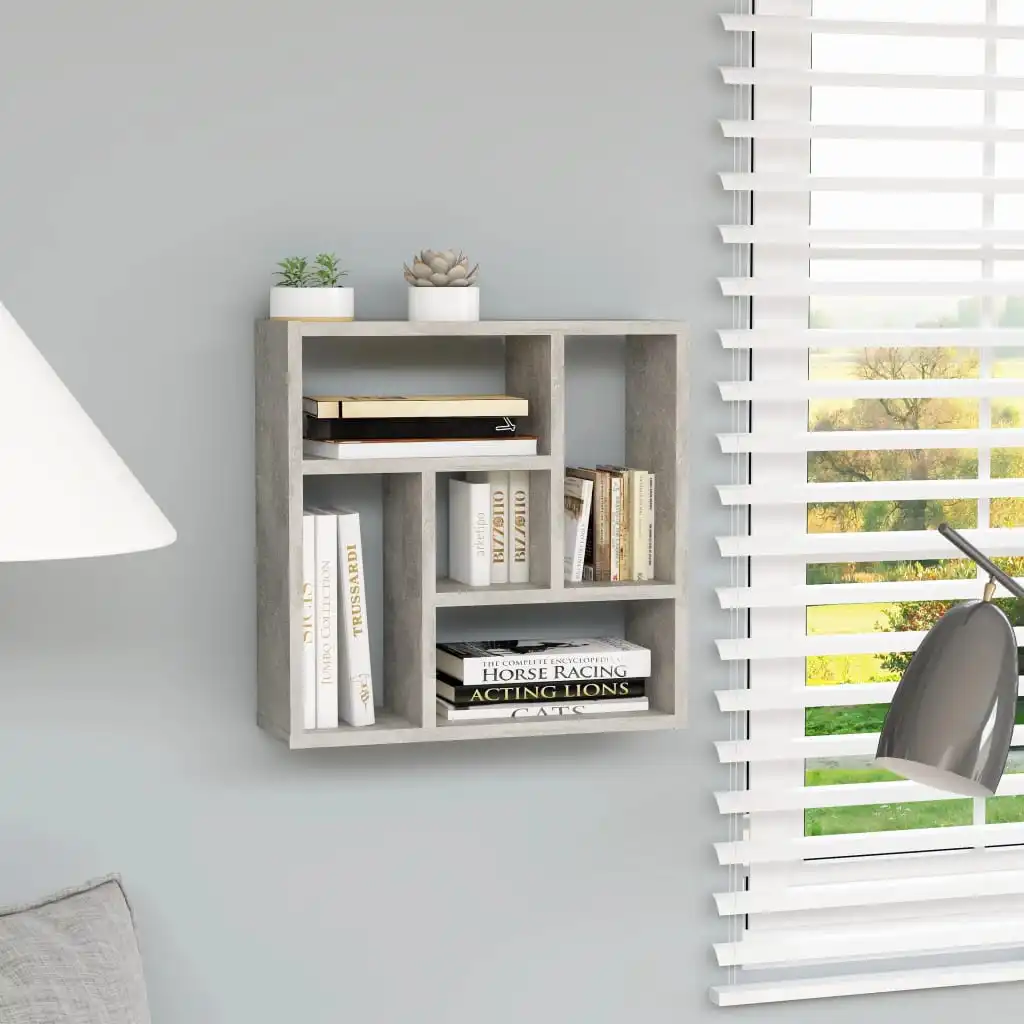 Our wall shelf features a sleek, classic design and is intended to be a decorative and practical addition to your decor. This modern floating shelf features 5 compartments, making it an ideal place to safely store your books, DVDs, or other items. This wall shelf, made of solid board, is sturdy and durable. It is also easy to clean with a damp cloth. This wall mount is also easy to assemble with the included mounting materials.