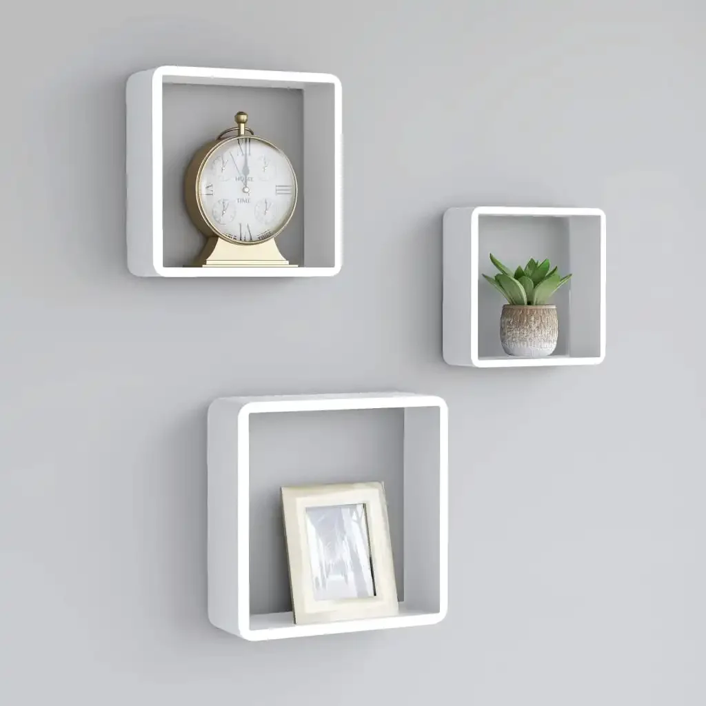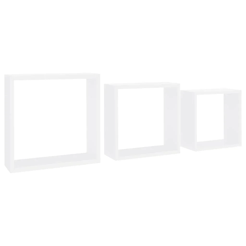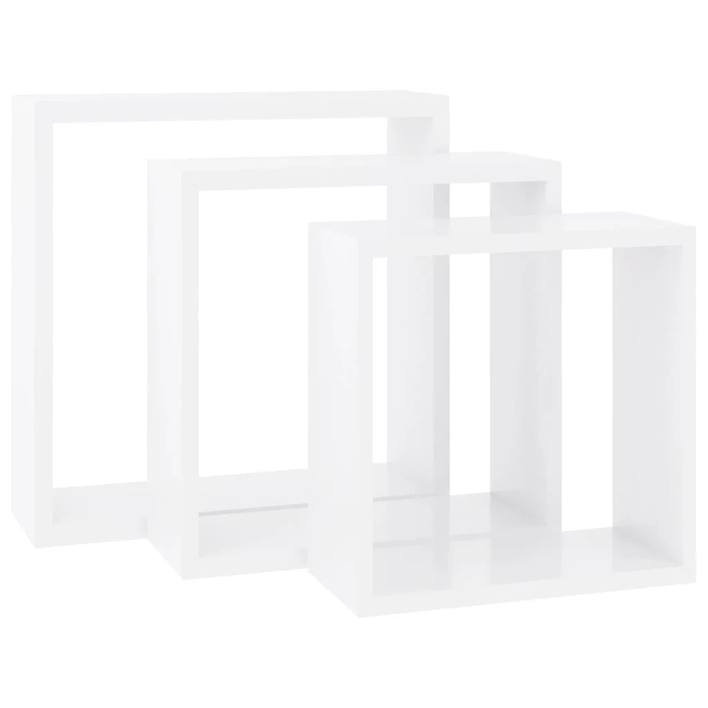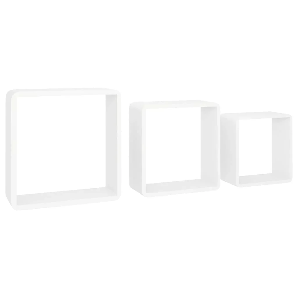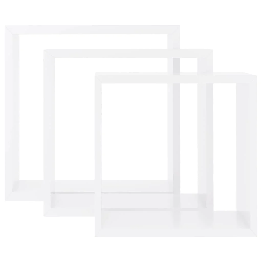 This set of 3 cube wall shelves is meant to be the focal point of any room. These cube organizers are made of MDF, which is stable and durable. With an invisible mounting system, these corner shelves are easy to install and serve as the perfect place to display items such as awards, books, collectibles, ornaments, and more. The corner shelves suit most decors and easily transform an empty wall into a design feature! Color: White Material: MDF Dimensions of the large cube shelf: 28 x 10 x 28 cm (W x D x H) Dimensions of the medium cube shelf: 24 x 10 x 24 cm (W x D x H) Dimensions of the small cube shelf: 20 x 10 x 20 cm (W x D x H) Maximum load capacity (each): 5 kg Invisible mounting system Assembly required Delivery contains: 3 x shelves
