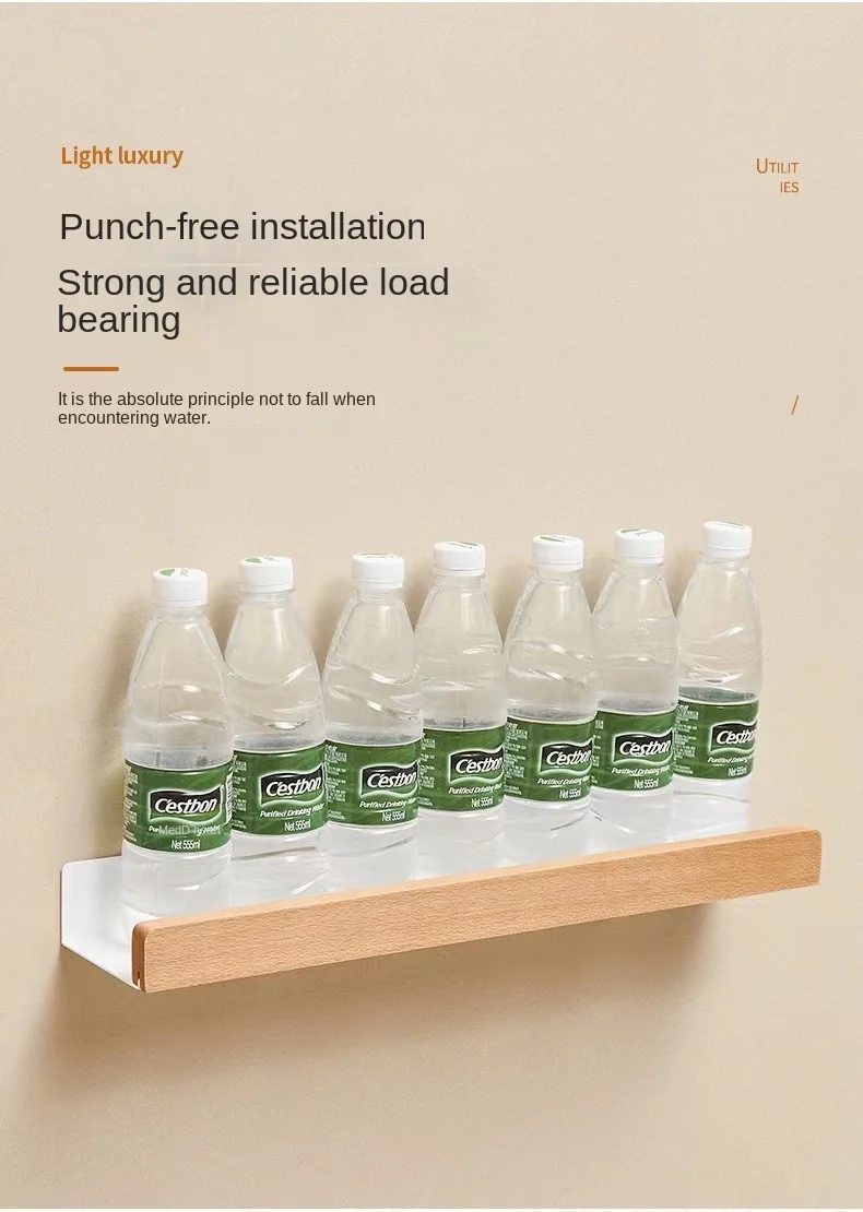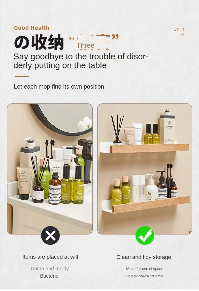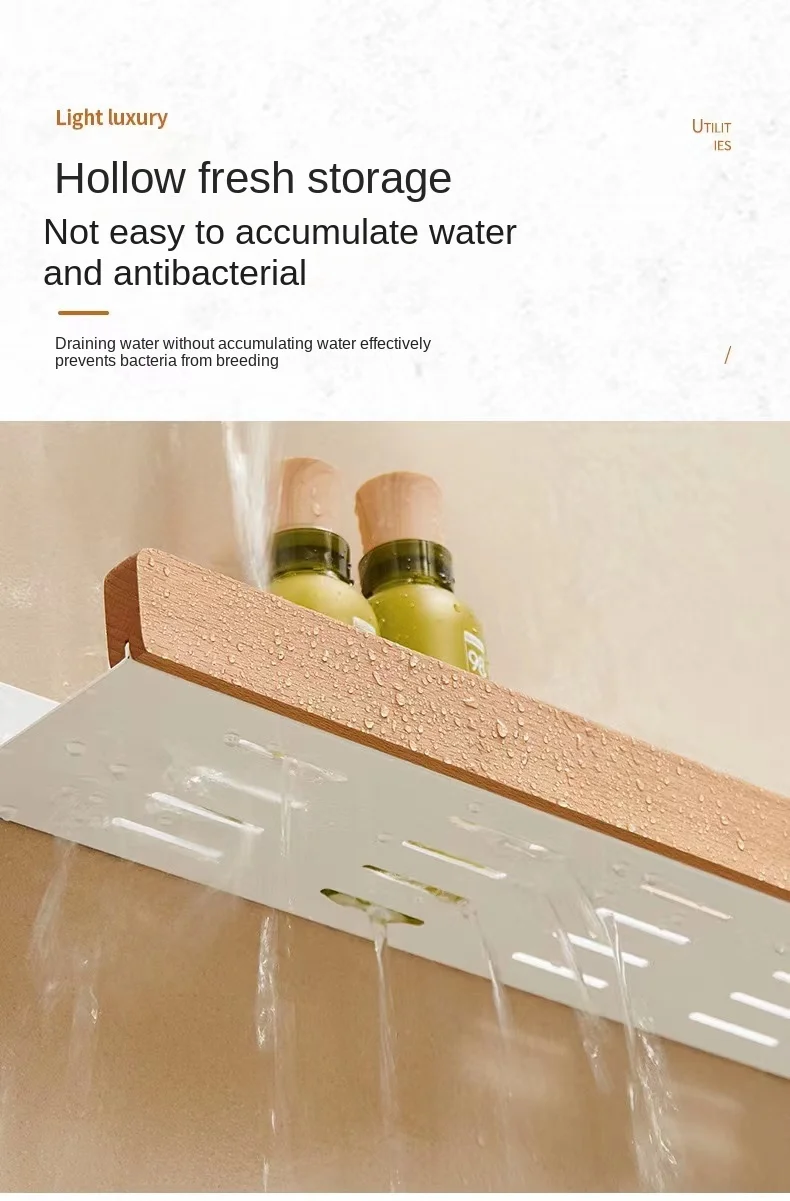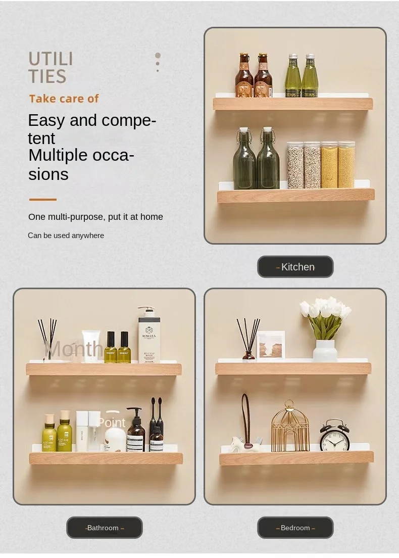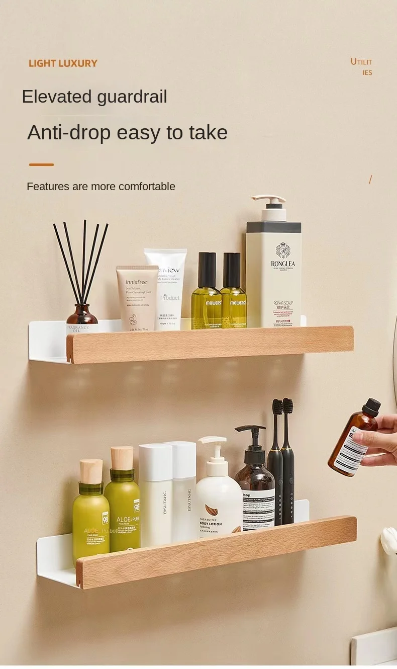 Wall-Mounted Bathroom Wooden Shelf Non-Punched Kitchen Storage Racks Waterproof And Moisture-Proof Bathroom Kitchen Accessories