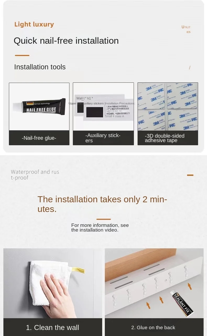 3. No need to drill holes for installation, strong load-bearing capacity and will not fall off.