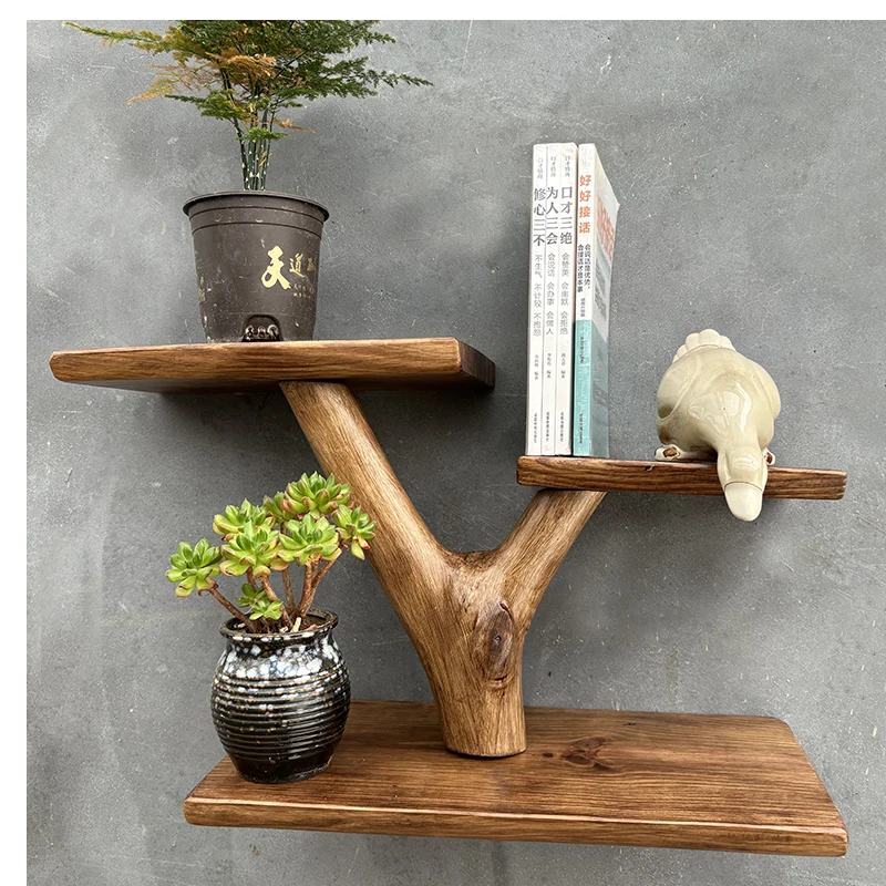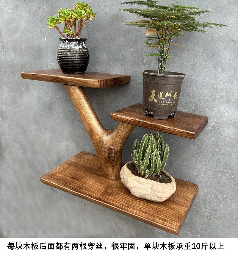 étagère murale en bois massif pour pot de fleur