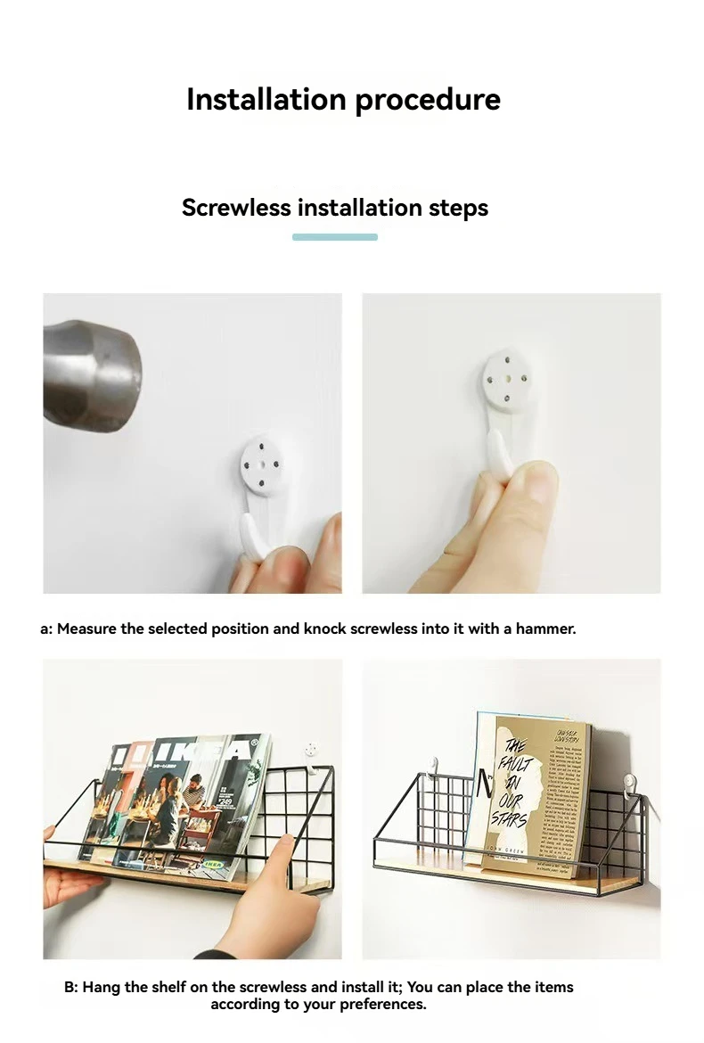 étagère murale en fer sans perçage 1 pièce