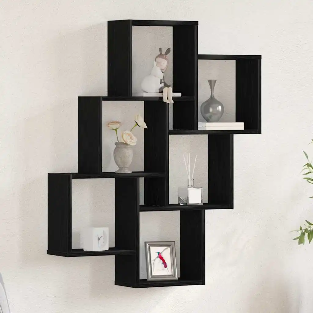 Are you short on space in your home? Maximize your indoor storage space and transform your wall in style with the wall cube shelf! With open compartments, the wall shelf provides the perfect place to store and display your books, awards, collectibles, ornaments, and more. The hanging shelf is sturdy and easy to clean. Color: Black Material: Engineered wood Dimensions: 78 x 15 x 93 cm (W x D x H) Maximum load capacity (total): 40 kg Assembly required Please note: Screws and plugs for inside the wall are not included. Find and use screws and plugs suitable for your walls. If you are unsure, seek professional advice. Read and follow each step of the instruction carefully.