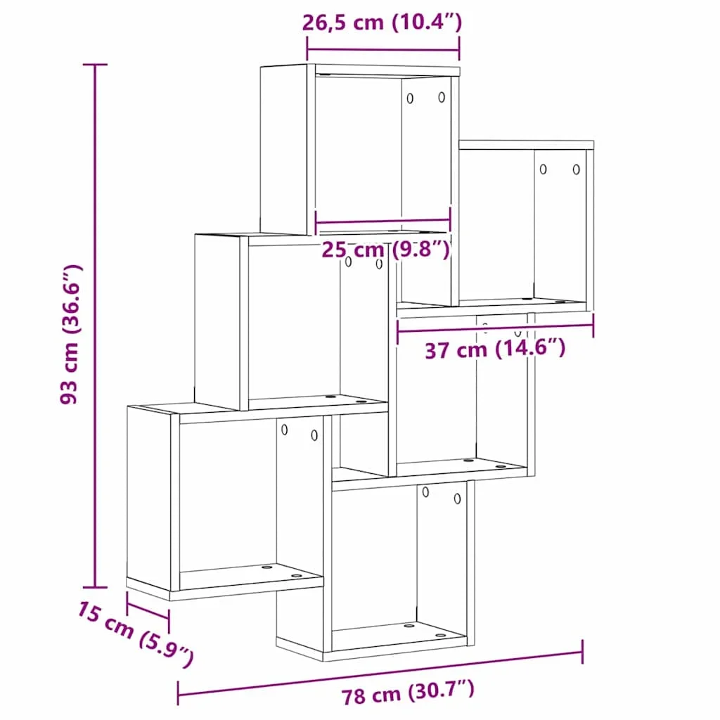 This cube-shaped wall shelf with its practical design is intended to be the focal point of your living room, bedroom, etc. Stable and durable material: Engineered wood is a durable and stable material whose smooth surface resists moisture, warping, and cracking, making it a reliable choice for a wide variety of projects. Large storage space: This wall shelf provides convenient storage space to keep your various daily essentials well organized and easily accessible. Space saving: This shelf can be mounted on the wall to add extra storage space. This way, you can maximize your floor space and keep the area clean. Easy to maintain: This wall shelf is easy to clean with a damp cloth and requires little maintenance. Good to know: Screws and anchors for the inside of the wall are not included. We advise you to find and use screws and anchors specifically suited to your walls. If you are unsure, you can consult a professional. Please read and follow each step of the instructions. Color: Old Wood Material: Engineered Wood Dimensions: 78 x 15 x 93 cm (W x D x H) Maximum Load Capacity (per shelf): 20 kg Assembly Required: Yes