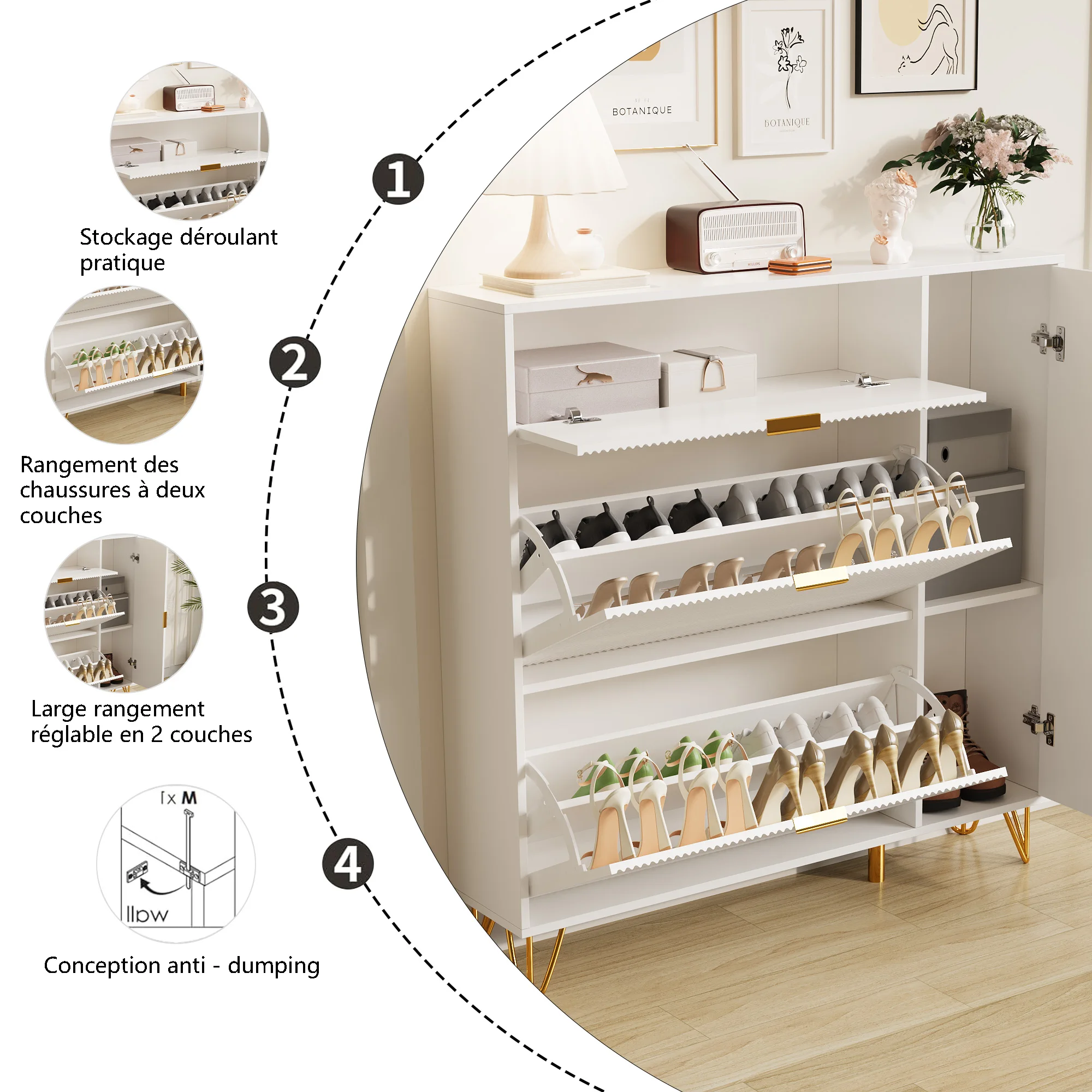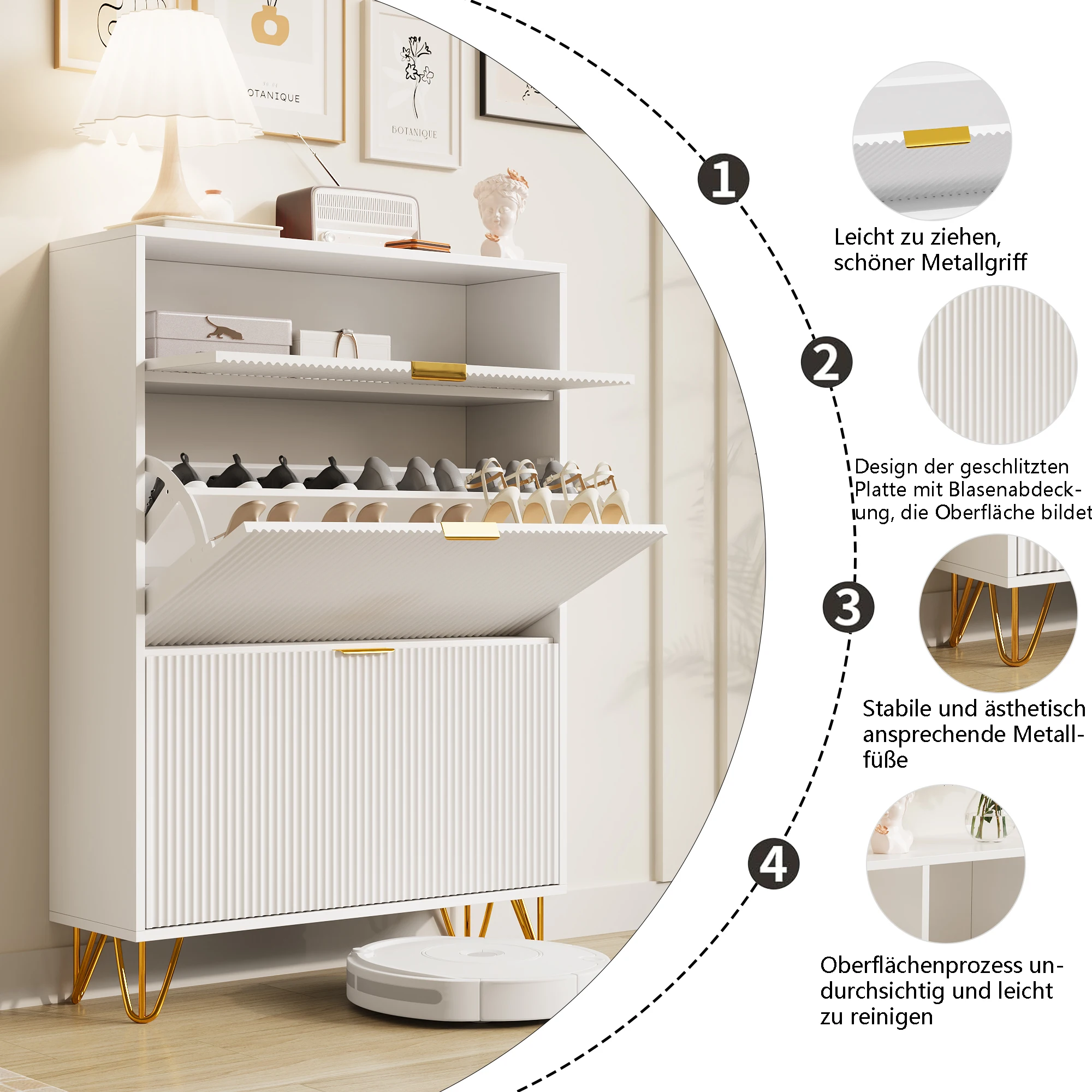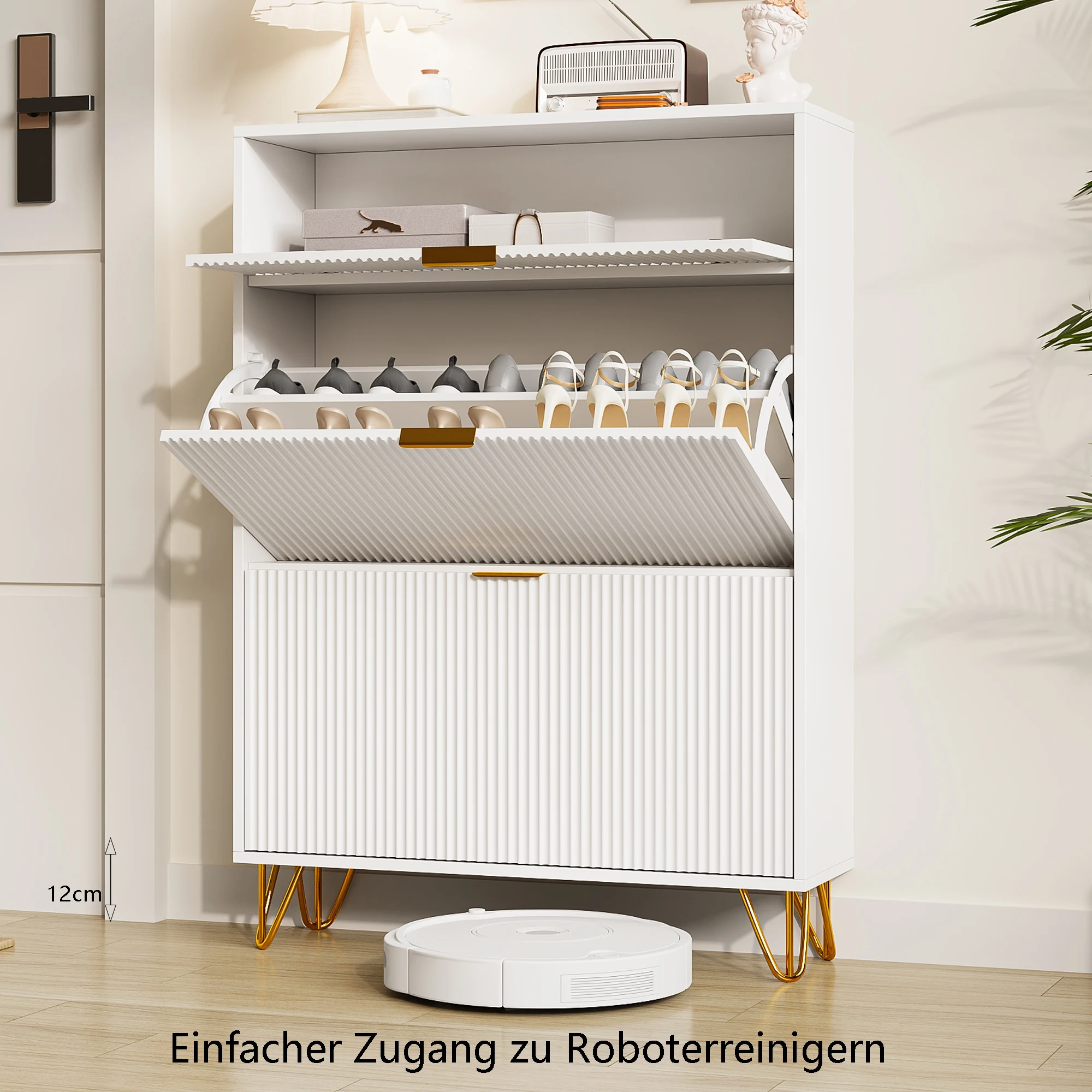 1. Shoe Cabinet with Folding Drawers:This shoe cabinet features two folding doors and a space-saving folding drawer design, allowing for easy opening and closing and effectively protecting your shoes from dust.
