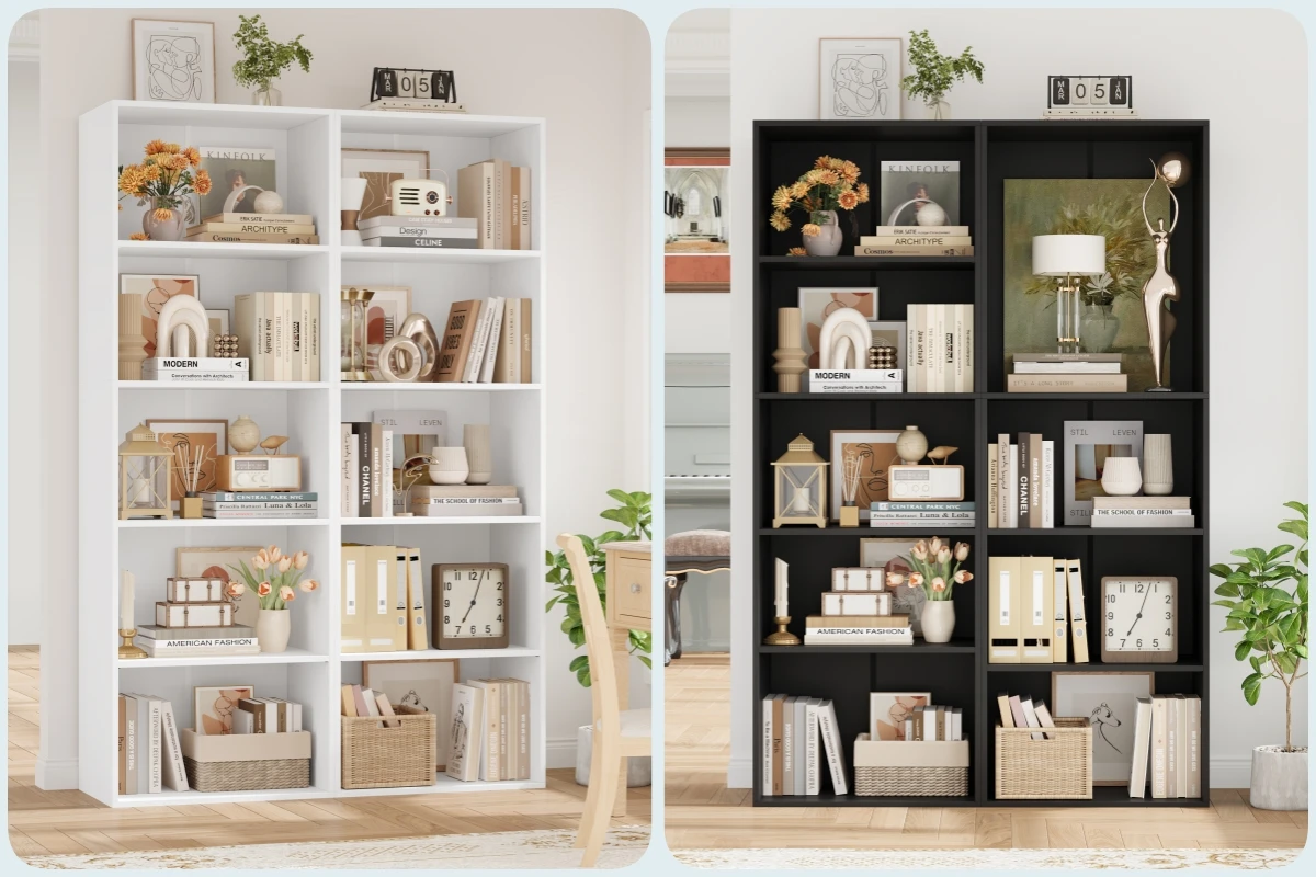 We offer bookcases in various sizes and colors. Choose one to put in your warm home.