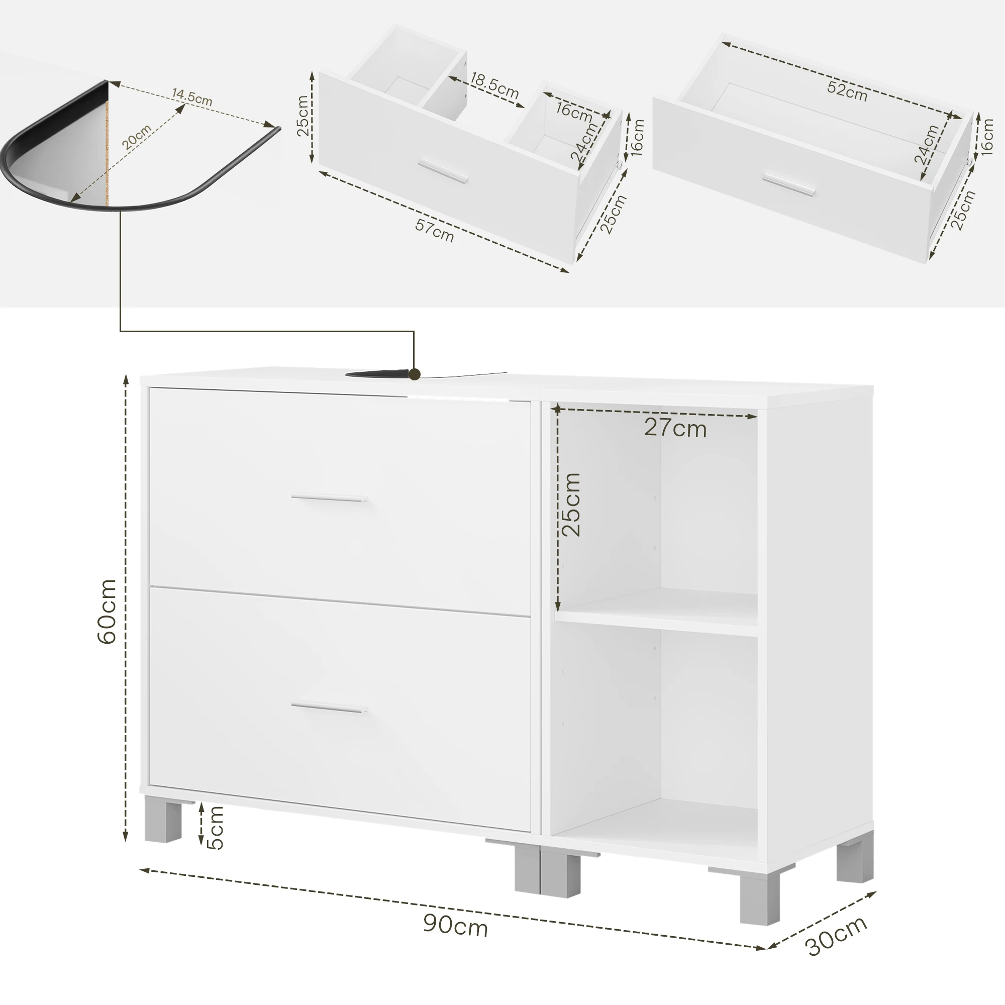 Organized storage: The vanity unit combination measuring 90x60x30 cm has two drawers and a side cabinet that can be flexibly positioned, providing a variety of storage space so that bathroom items can be neatly stored to create a tidy bathroom.