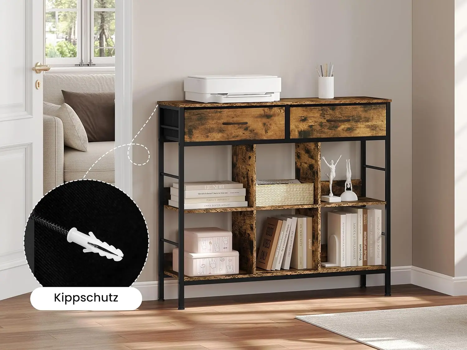 WOLTU Standing Bookcase Shelf with 2 Drawers Metal Frame Storage Shelf with 6 Compartments for Living Room Bedroom Study Kitchen