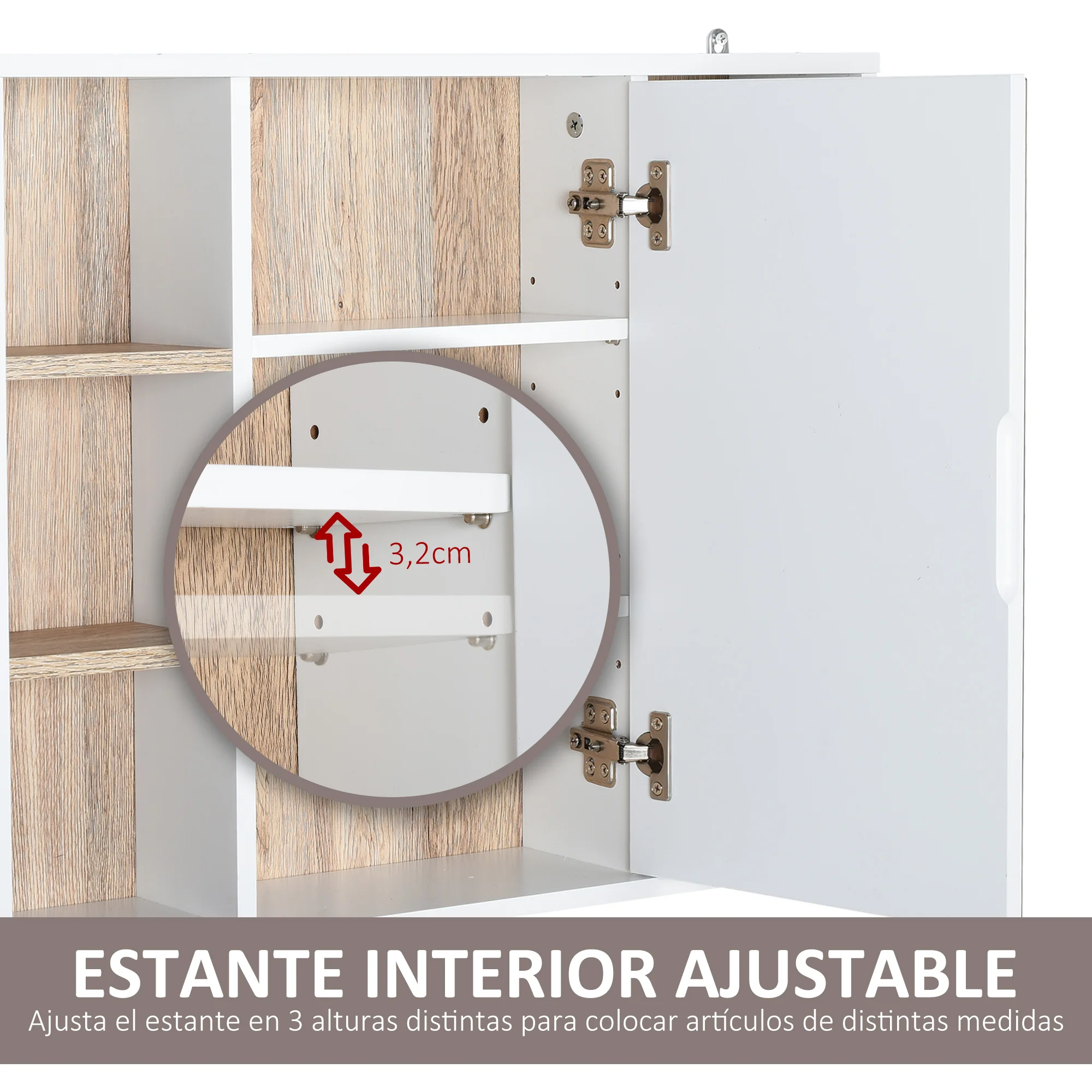 This bathroom mirror with storage is ideal for redecorating your bathroom in a simple way and to help you keep it in order.Behind its mirror there is an extra storage space with adjustable shelves perfect for adjusting them according to your needs.In addition, it is an ideal space to keep hidden what you do not want to be visible to anyone who uses the bathroom.Its side shelves are ideal for placing daily use products or even small decorations.Update and make better use of your bathroom quickly and easily thanks to this bathroom mirror with storage.