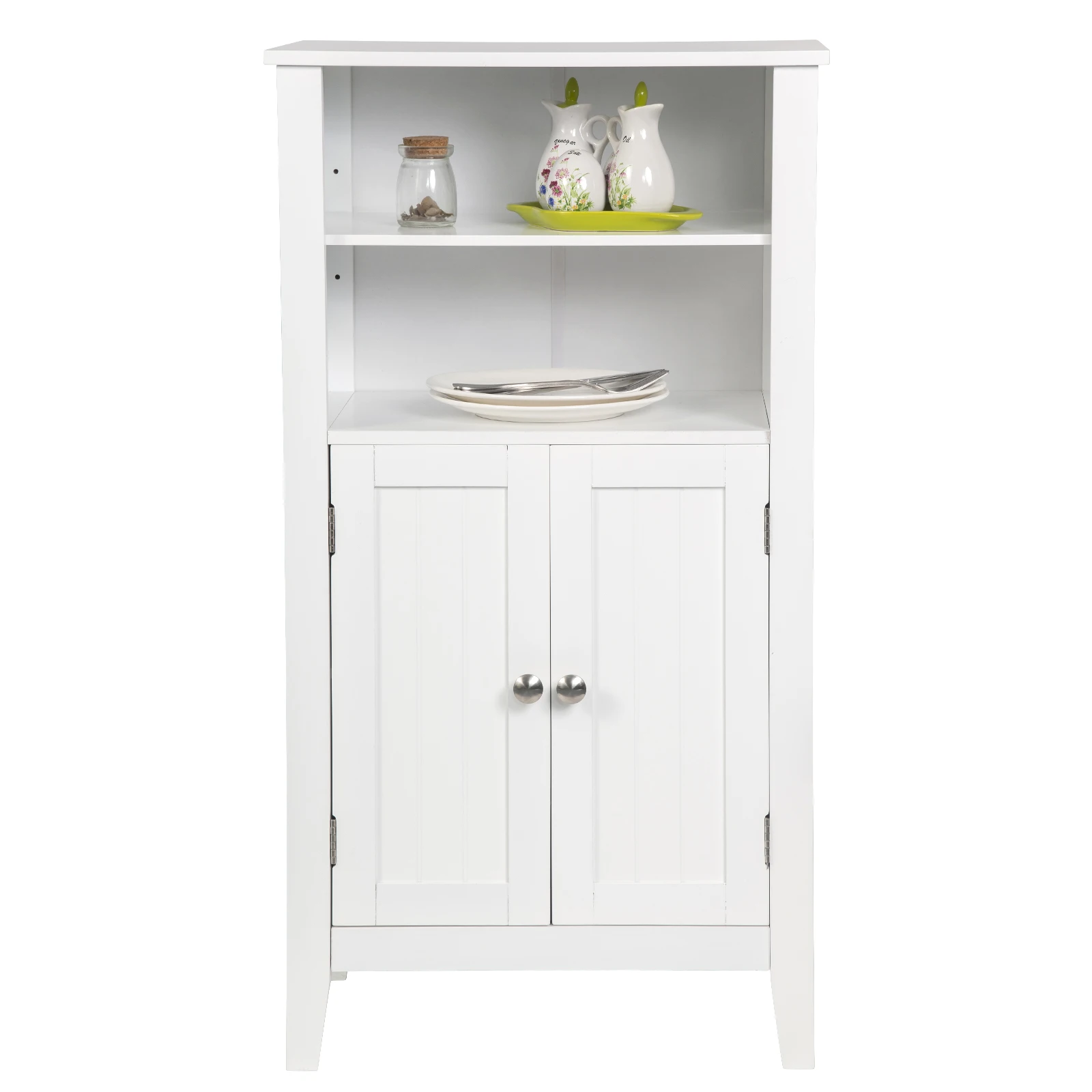 White Floor Standing Bathroom Cabinet 50x30x92.5cm Storage Cupboard Side Cabinet with Adjustable Shelf 2 Doors Organizer