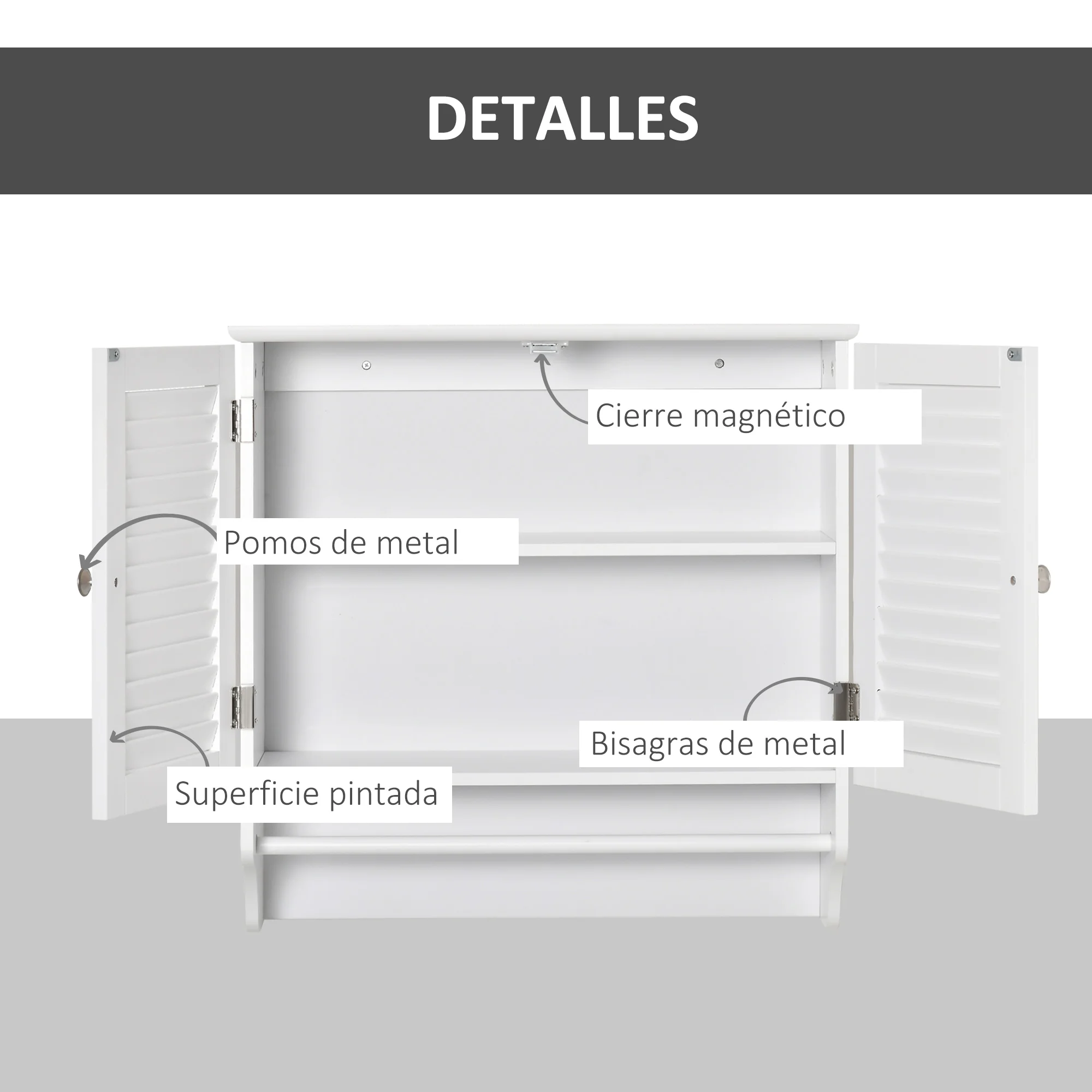 -Metal hinged doors and zinc alloy knobs for easy opening and closing of doors
