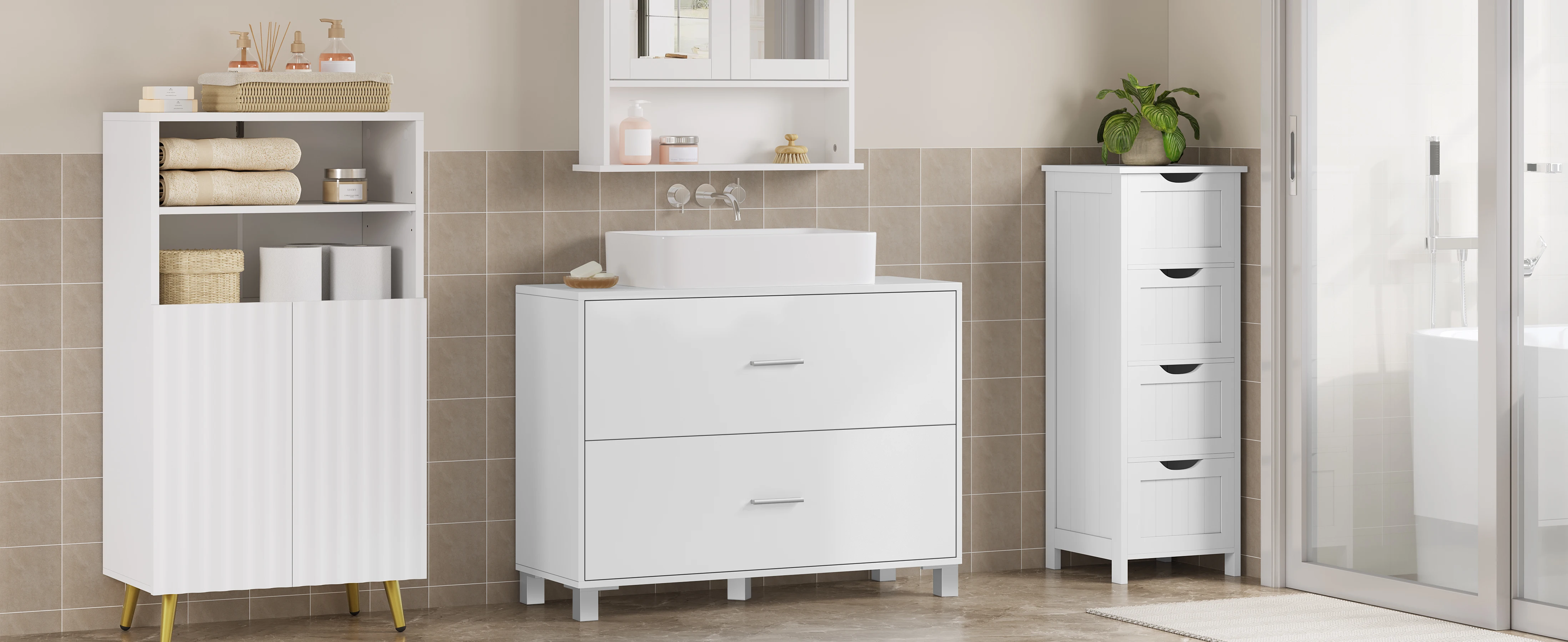 MODERN AND ELEGANT: With its minimalist design, the white vanity unit with drawers is a modern addition to your bathroom, bringing a clean and elegant atmosphere to your space