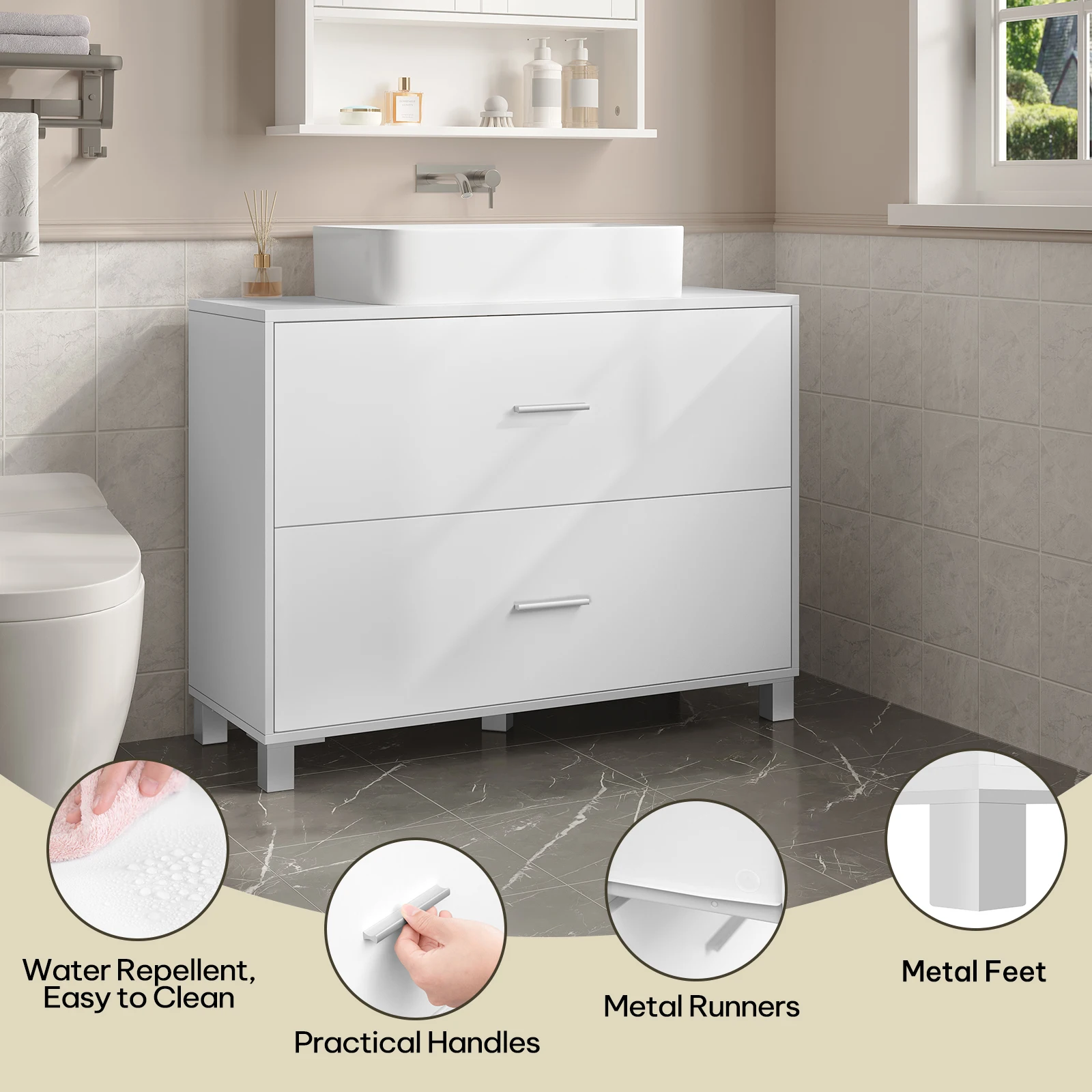 White Floor-Standing Bathroom Cabinet with 2 Drawers Bathroom Vanity Unit Under Sink Toilet Storage Organizer 80x30x60cm