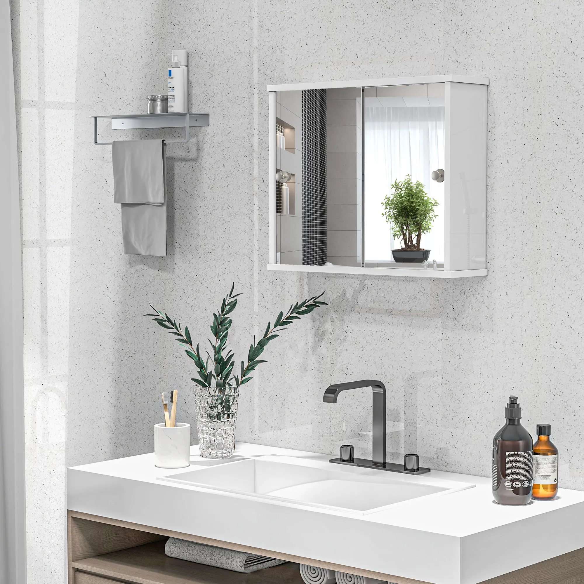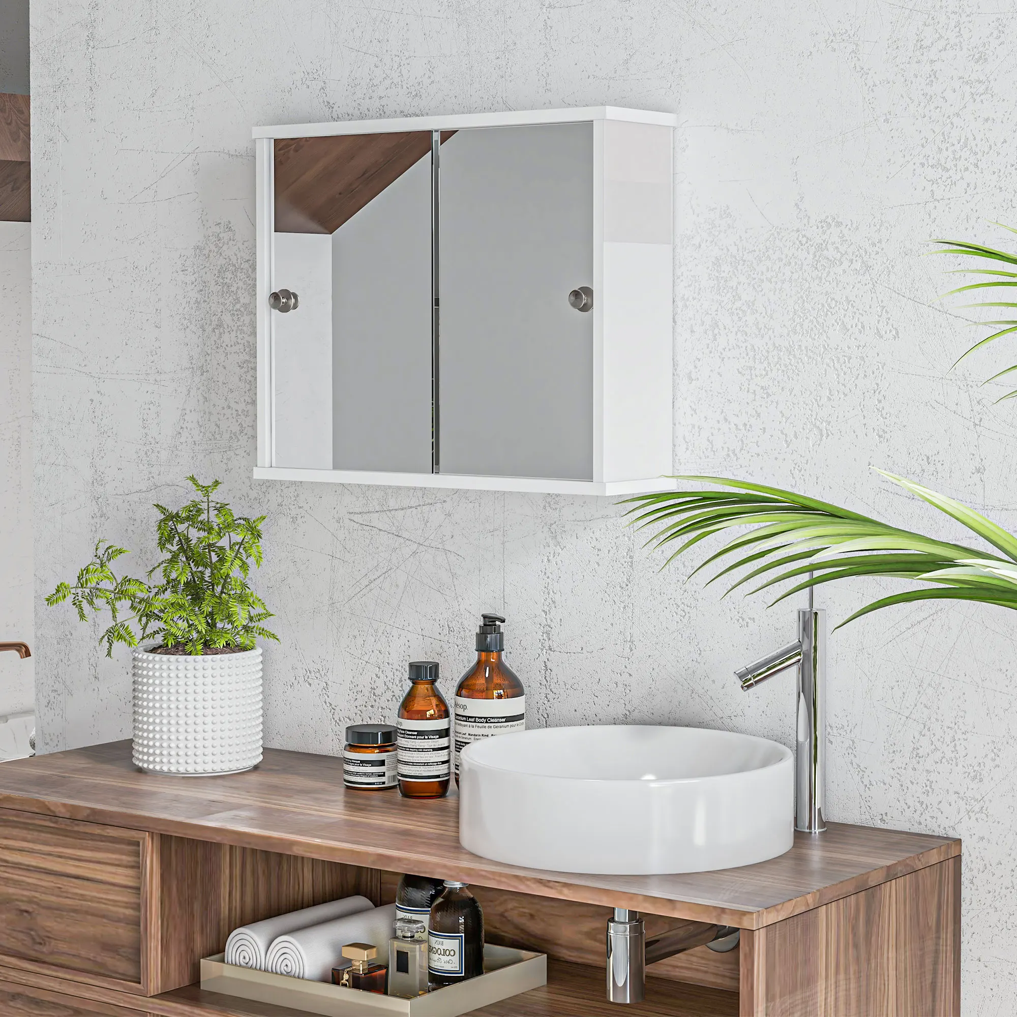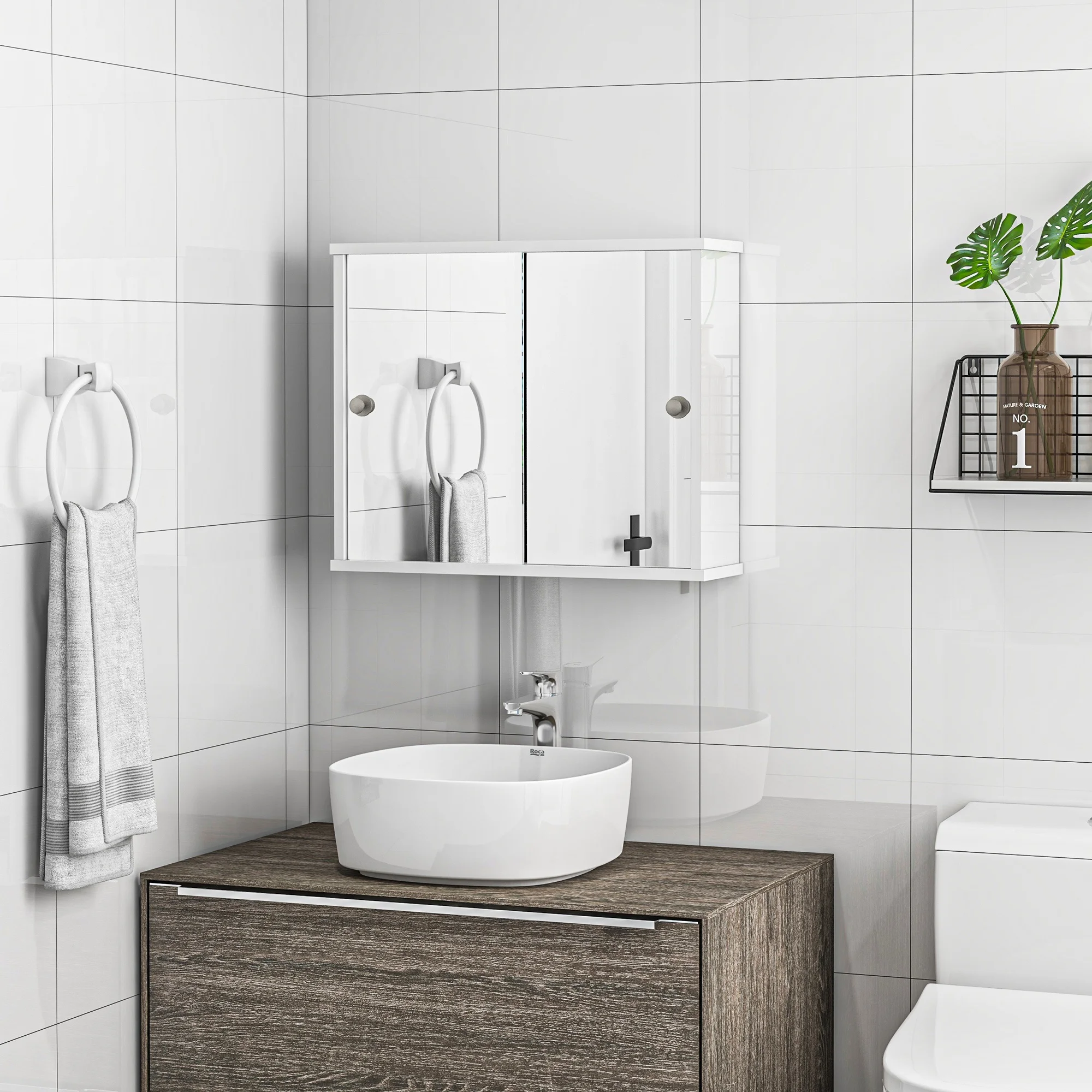 - Bathroom cabinet with wall mount design, ideal for saving floor space;