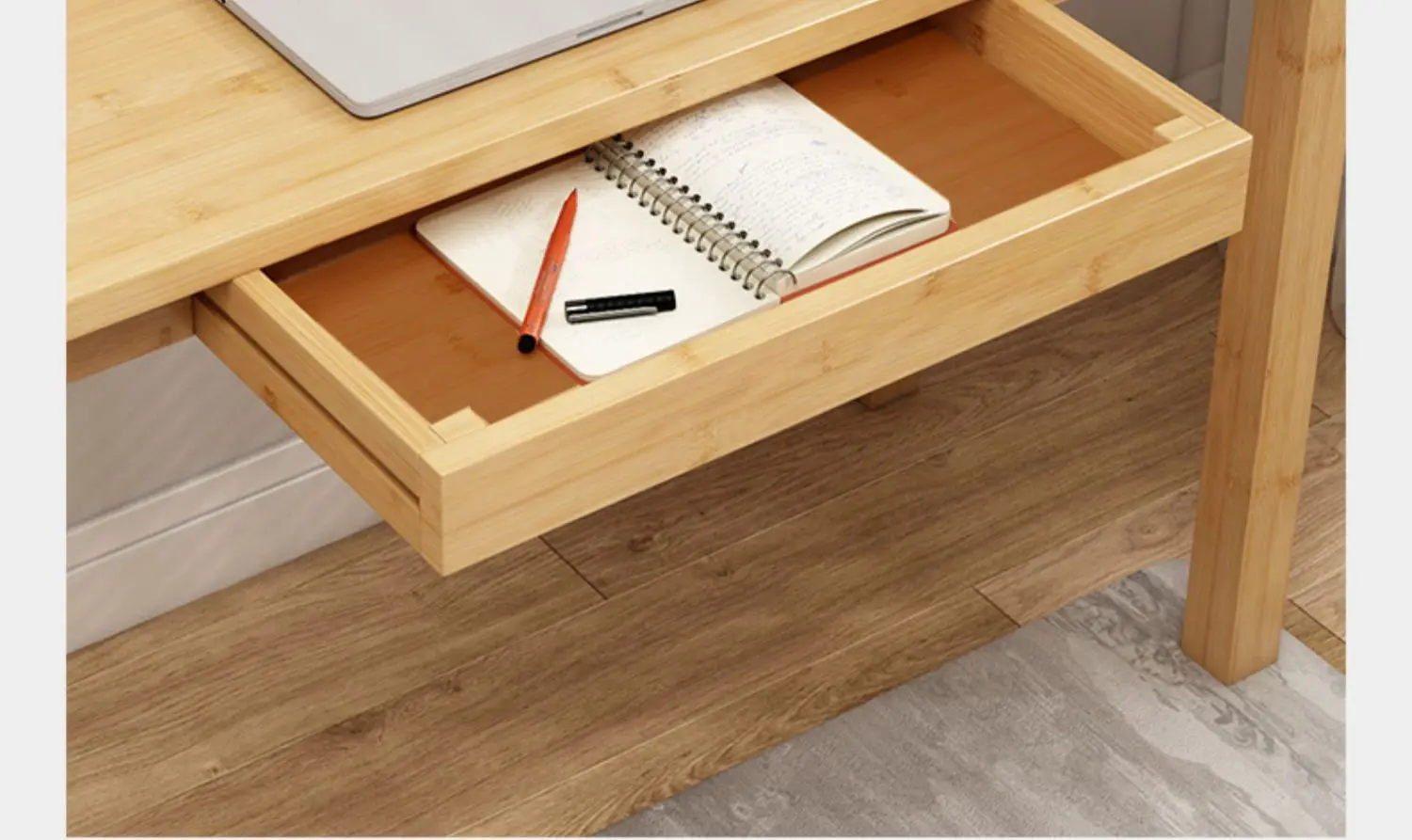 Spacious desktop with natural bamboo texture
