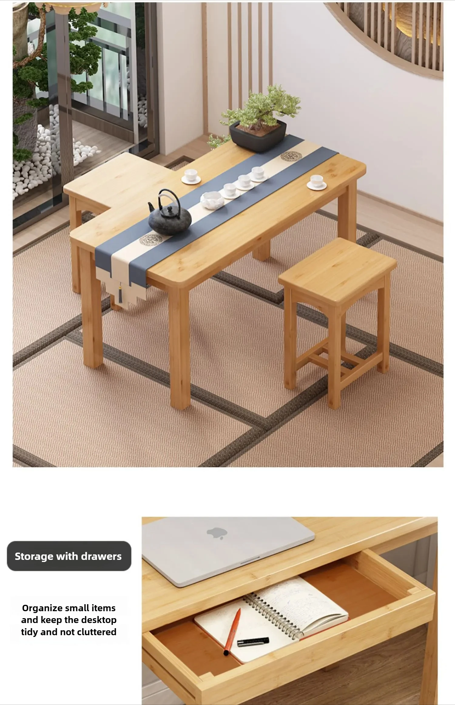 대나무 다용도 책상, 학습·다도·휴식에 적합